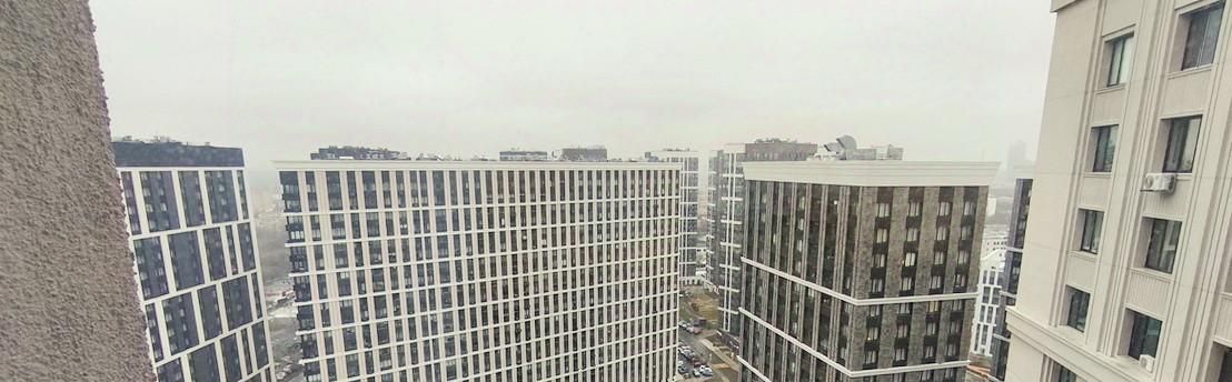 Высокий этаж, хорошие виды; вид основных окон - на запад, взрослая спальня - на север.