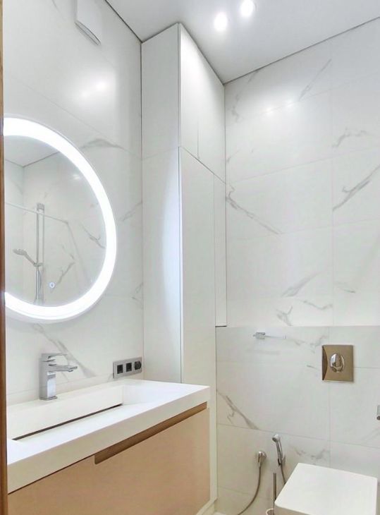 Сделан выверенный ремонт в светлых, мягких, пастельных тонах только дорогими, качественными материалами.
