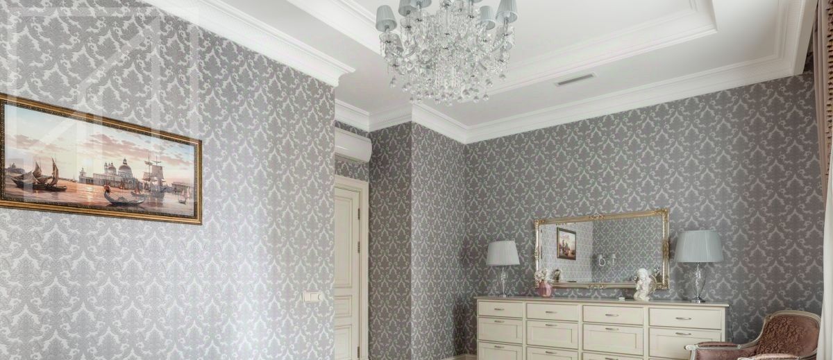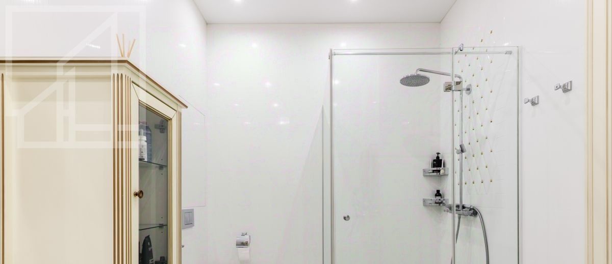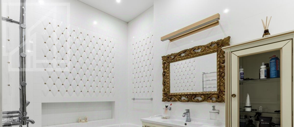 Планировка: угловая гостиная-столовая-кухня с тремя окнами, основная спальня с двумя окнами, 2 спальни, большая ванная комната с ванной и душем, второй санузел, холл. Окна выходят в тихий внутренний двор. в квартире представлена мебель испанского бренда Modenese-Gastone. Кухня оснащена встроенной техникой Bosch, сантехника бренда Jacob Delafon.