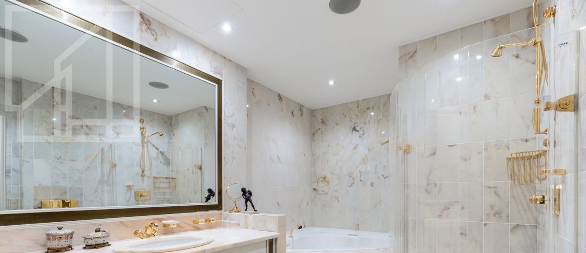 Планировка: гостиная-столовая с домашним кинотеатром, кухня с действующим камином, оборудованная всей необходимой техникой Miele, спальня, детская, кабинет, ванная комната с джакузи и душевой кабиной, прихожая, кладовые помещения. Квартира оформлена по индивидуальному проекту немецкого бюро Truggelmann с использованием дорогих натуральных материалов. Квартира полностью укомплектована всей необходимой мебелью и техникой от лучших мировых производителей. Предусмотрены встроенное аудио и видеооборудование, индивидуальная система кондиционирования в каждой комнате, фильтры для воды Zepter. Окна выходят на обе стороны. Высота потолка 3,5 м.