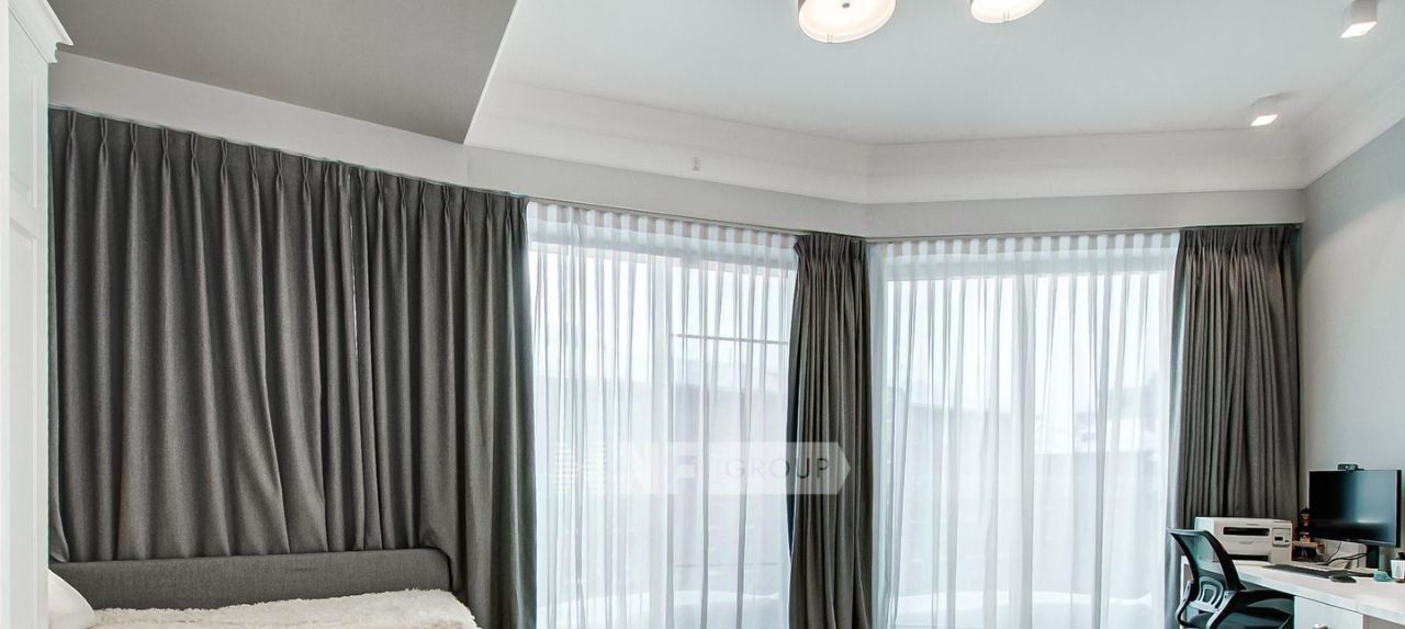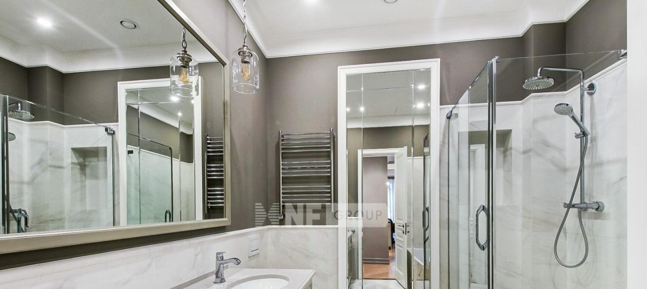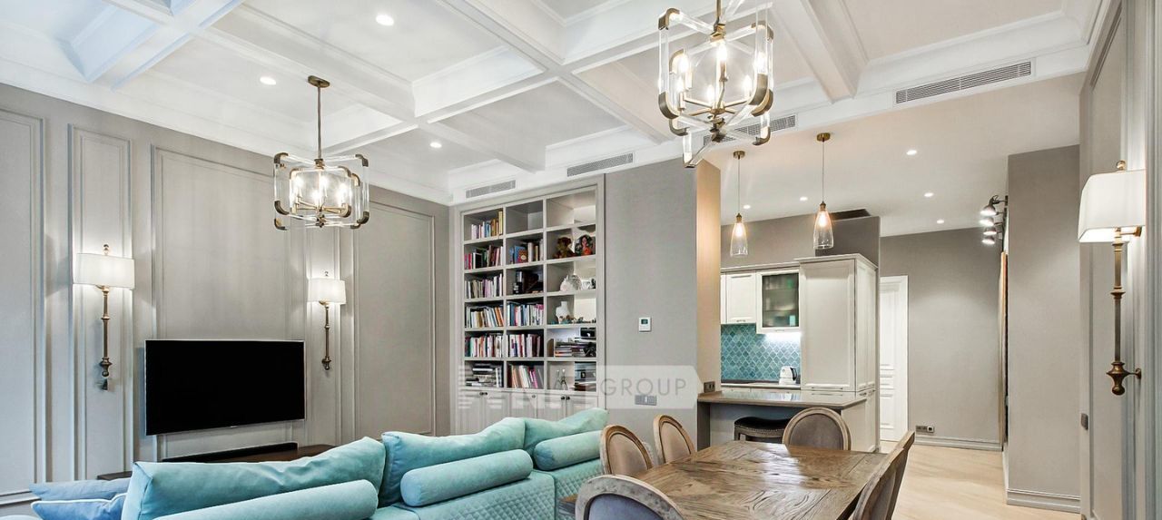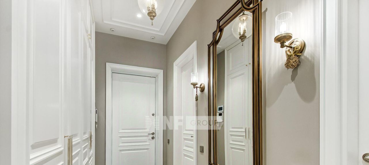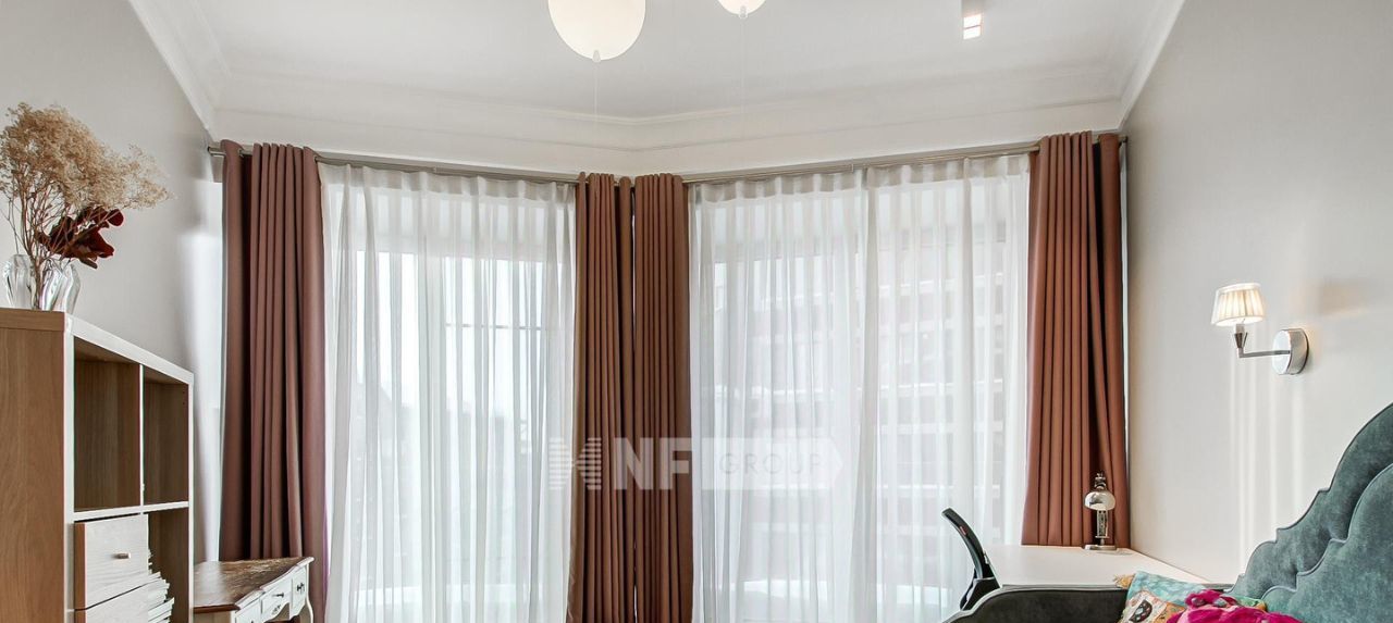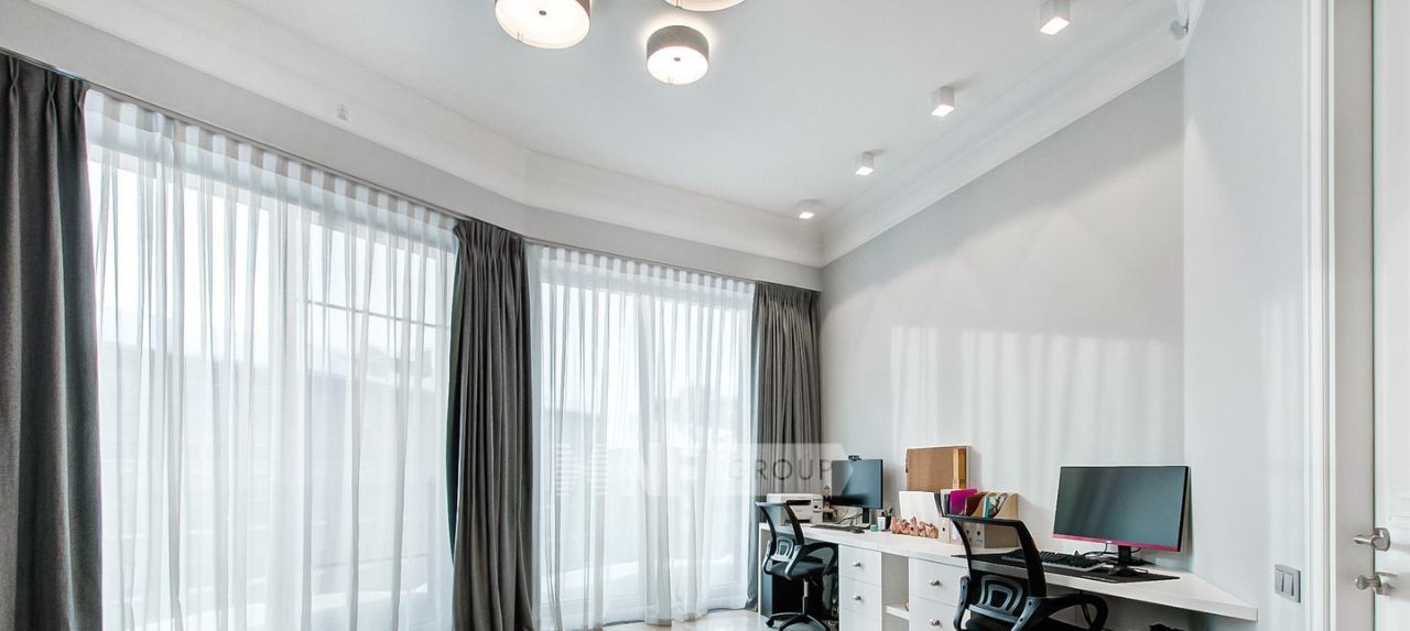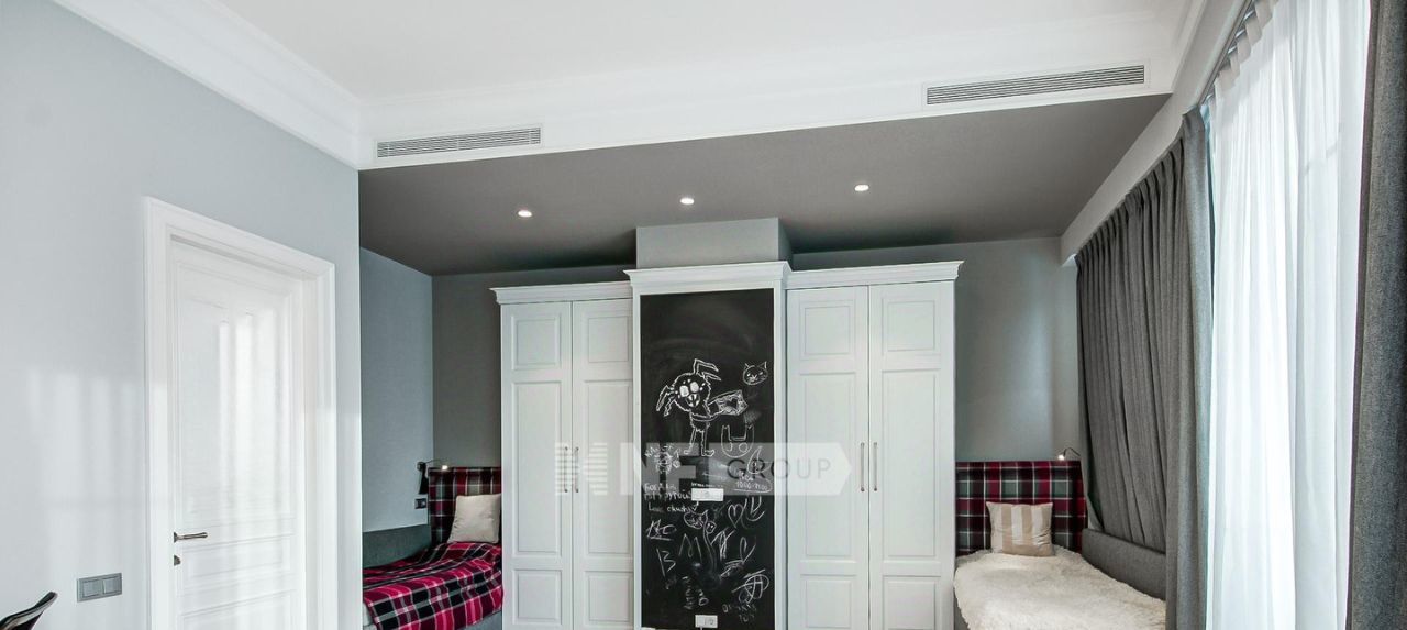 Планировка: кухня-гостиная, мастер спальня с душевой комнатой, две детские спальни, гостевой санузел с ванной и душевой, постирочная. Интерьер выполнен в стиле современной классики. В каждой комнате имеются большие вместительные шкафы, на окнах установлены шторы black-out, имеется вся необходимая бытовая техника, установлена приточно-вытяжная вентиляция Daikin, система очистки воды, увлажнители Venta, а также сделана полная звукоизоляция.