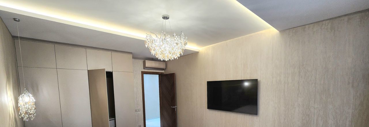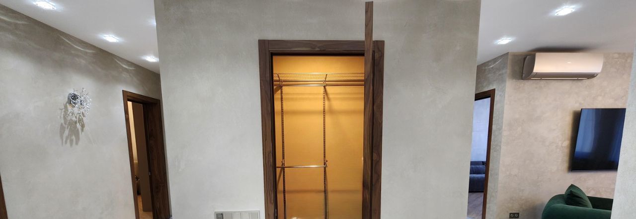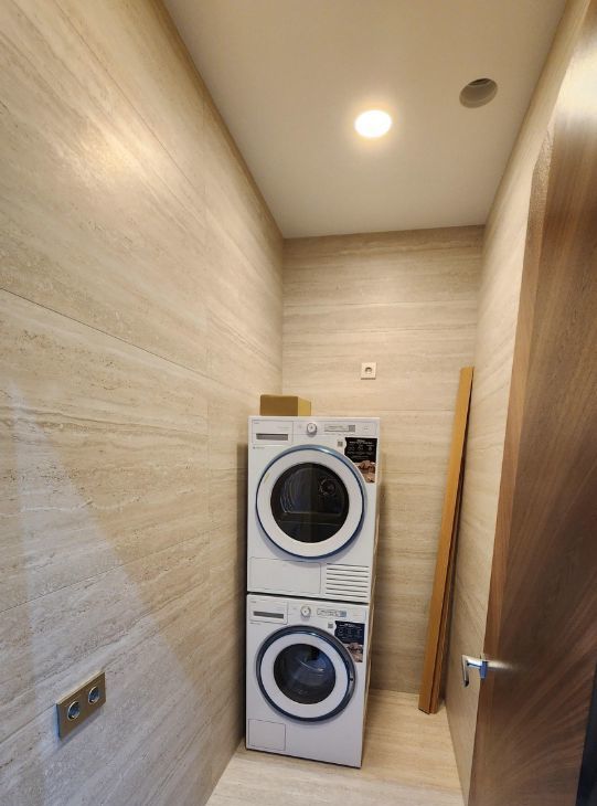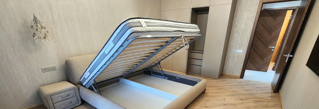 Просторная планировка: Большая кухня/гостиная, кабинет/детская или гостевая комната, 2 изолированные спальни, большой сан.узел, постирочная с сушильной и стиральной машинами, сан.узел с душ.кабиной, 2 гардеробные комнаты.