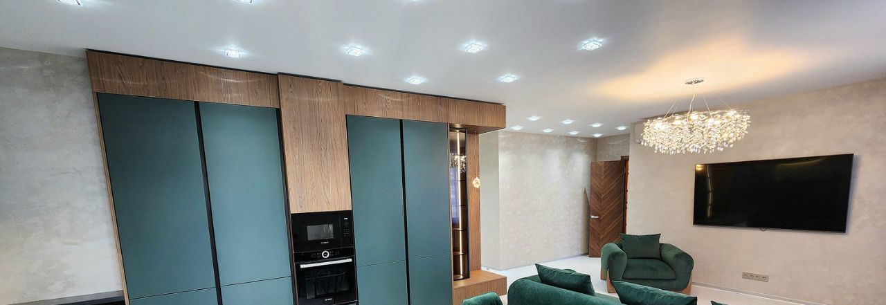 -Кухня полностью укомплектована техникой: - Посудомоечная машина - Микроволновая печь - Духовой шкаф - Большая варочная панель - Винный шкаф — большой 2-ной Холодильник - Измельчитель мусора.