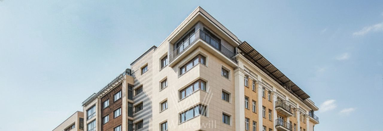 Главное о доме. Клубный кирпичный дом начала двухтысячных с камерной этажностью. Восемь уровней, малое число квартир, охраняемая территория с въездом через арку. Внутри — аккуратные лобби, современная инженерия, тройные стеклопакеты, подземный паркинг примерно на семьдесят шесть машиномест. С одной стороны восстановлен исторический фасад с открытыми балконами, что добавляет дому характера старого центра. Формат для тех, кто ценит тишину переулка, зрелую инфраструктуру вокруг и свет в больших окнах.