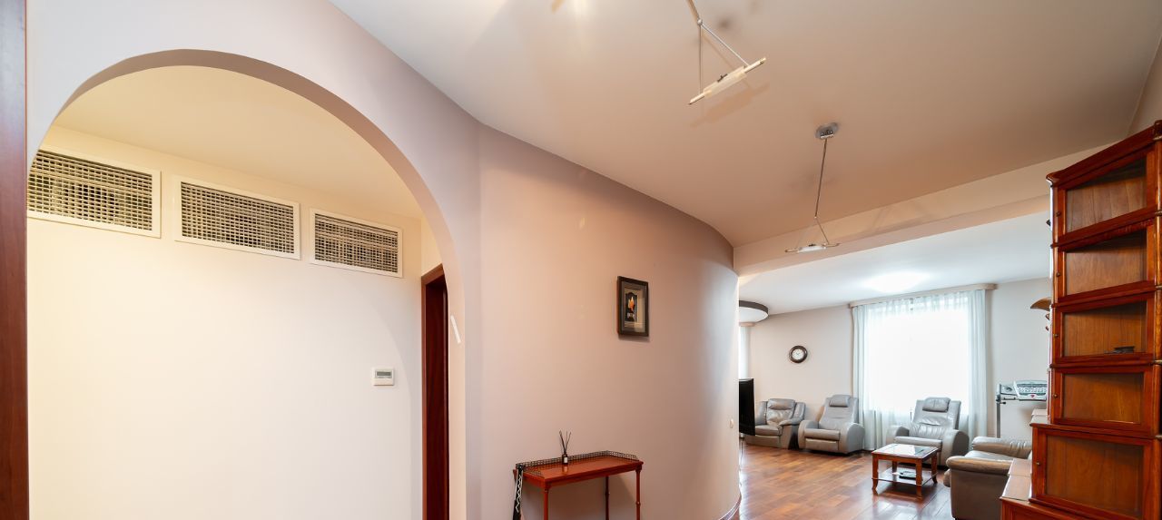 Просторная элегантная квартира с качественным дизайнерским ремонтом в классическом стиле. Пол - натуральный паркет, стены под покраску. Функциональная, практичная планировка: кухня + гостиная, 3 изолированные комнаты (одна из них мастер-спальня со своим санузлом и гардеробной), 2 полноценных совмещенных санузла. Система кондиционирования, подогрев полов. Встроенная кухня со всей необходимой бытовой техникой, включая посудомоечную машину. Квартира полностью меблирована. Много мест хранения. Окна выходят на три стороны.