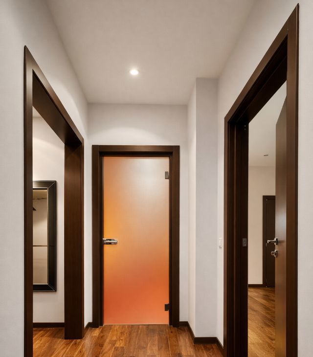 отдельную спальню и кабинет с примыкающим санузлом — эта зона также отделена тамбуром от общего пространства.
