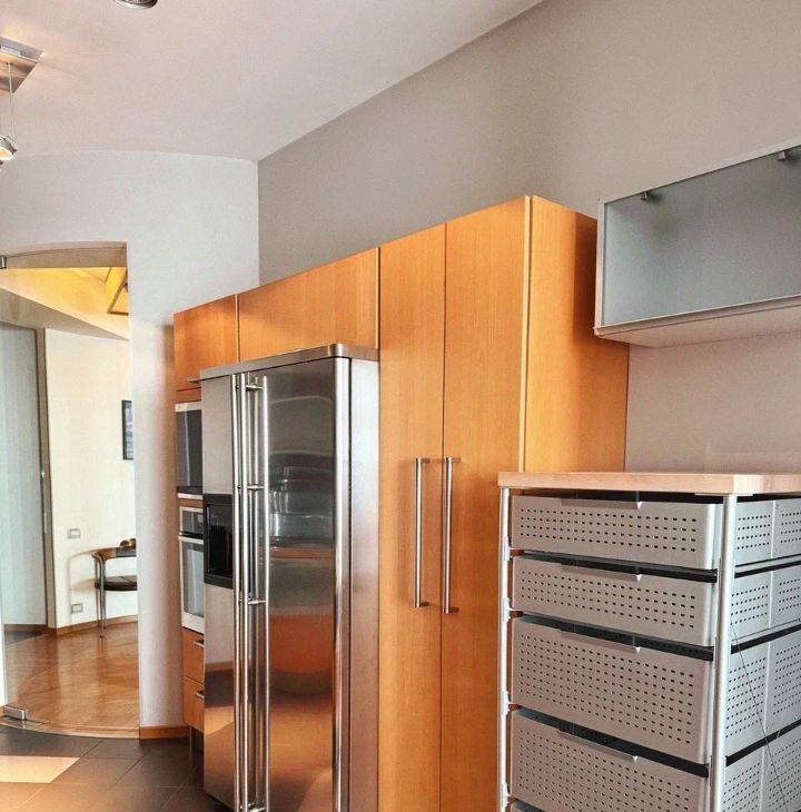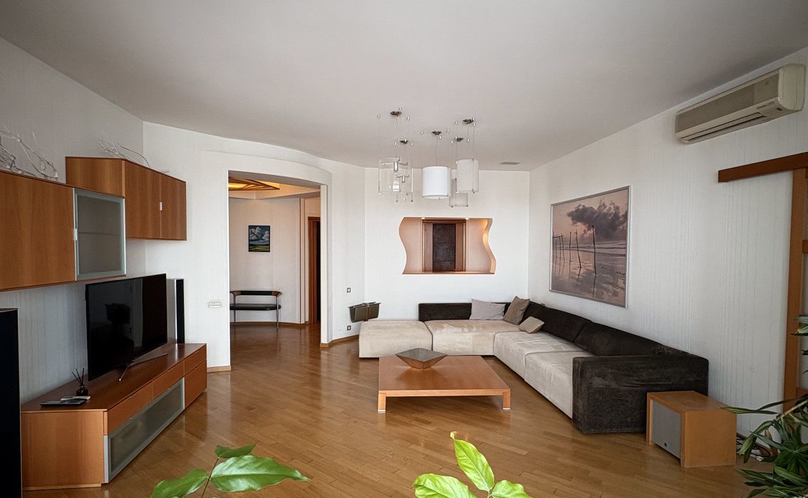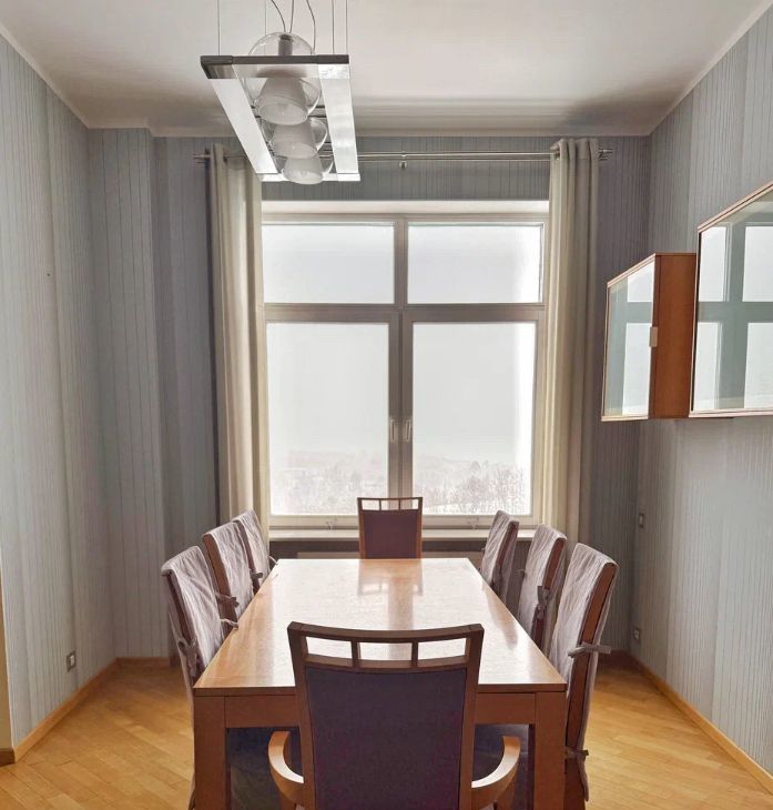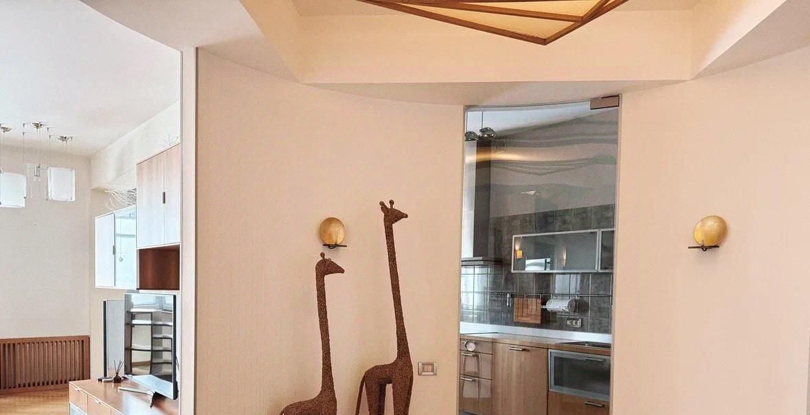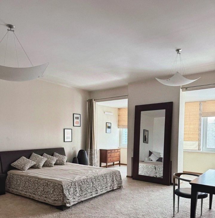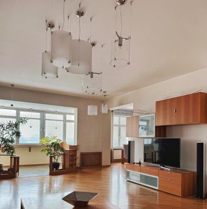 В аренду сдается четырехкомнатная квартира с дизайнерским ремонтом, где использованы только натуральные материалы: массив дерева, натуральный камень, премиальный текстиль и кожа. Панорамные окна открывают виды на Москву и зеленый парк.