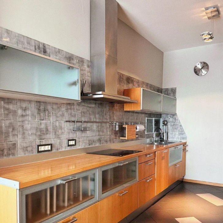 - Гарнитур с встроенной техникой премиум-класса: Miele и Gaggenau. Пространство организовано для удобной сервировки и приготовления.