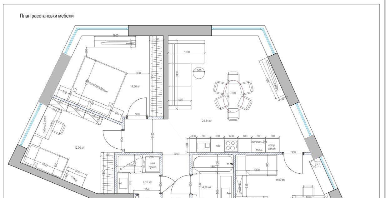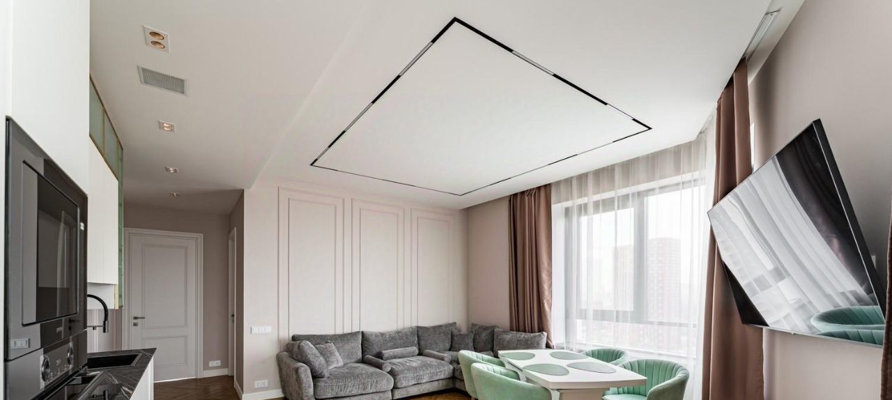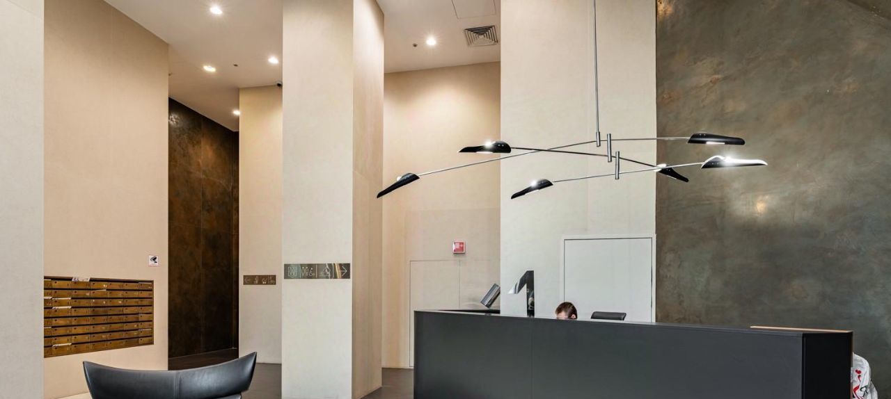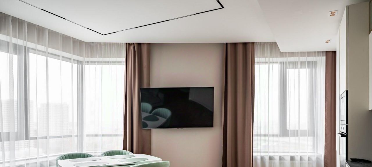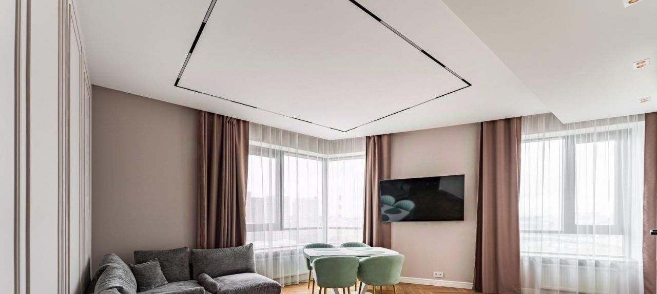 Просторная кухня-гостиная, 3 отдельные комнаты, 2 санузла . Полностью меблирована под заказ, имеется вся бытовая техника, посудомоечная машина, духовой шкаф, микроволновая печь, телевизор, стиральная и сушильная машины, встроенный холодильник, встроенные шкафы. Межкомнатные двери 2.4м. Установлена современная система кондиционирования. Теплые полы. Использованы качественные материалы. 5 больших панорамных окон выходят на 3 стороны света.