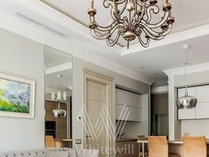 Планировка: просторная гостиная выполненная в едином пространстве с кухней и обеденной зоной, основная спальня с гардеробной и ванной комнатами, вторая спальня с ванной комнатой, гостевая спальня с ванной комнатой, постирочная, гостевой санузел. В квартире огромное количество шкафов и мест для хранения.