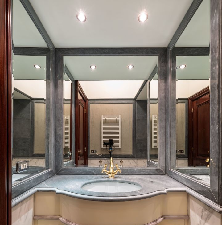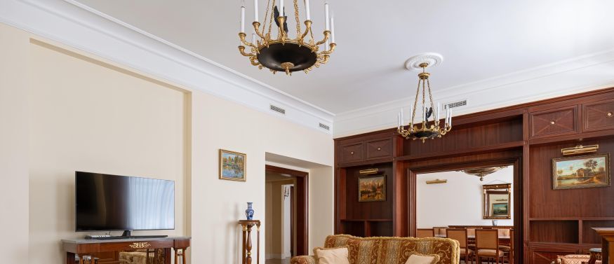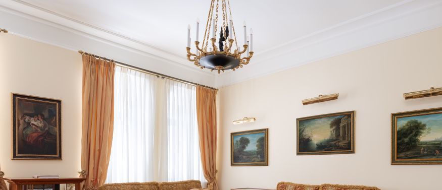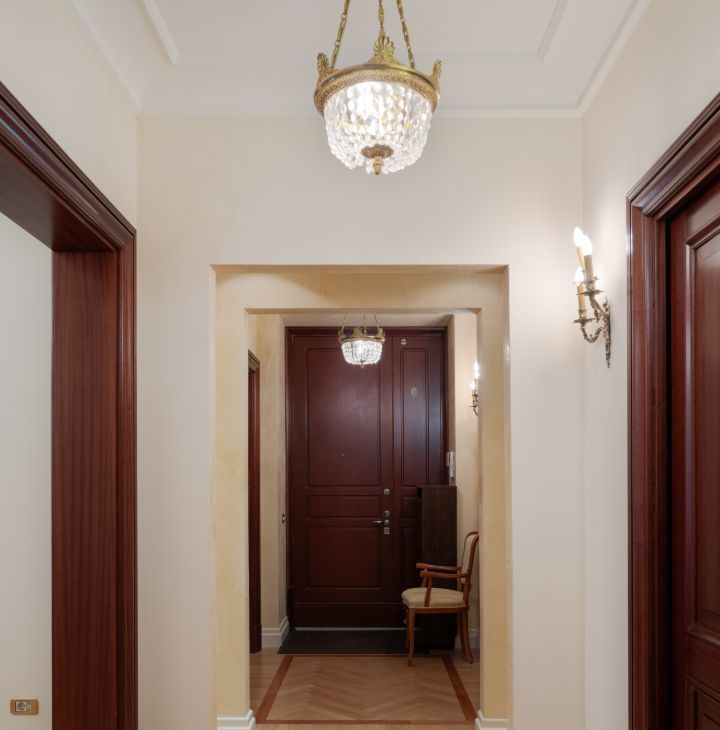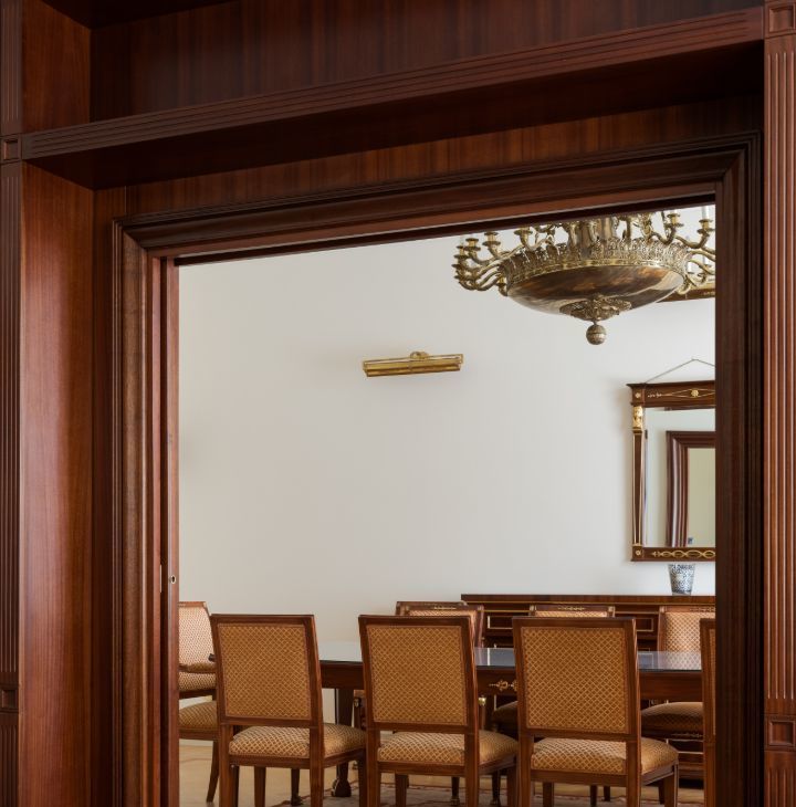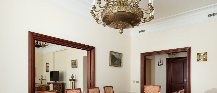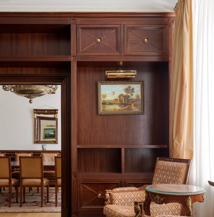 КВАРТИРА в стиле ампир является проектом известного итальянского архитектора Carlo Peis. Изыскано обставлена итальянской мебелью по индивидуальному заказу и украшена коллекцией антиквариата и картинами русских живописцев, а также предметами декора от Aubusson, Albizzi, Cappellini. Интерьер был опубликован в известных журналах Salon Interior и Salon Deluxe.