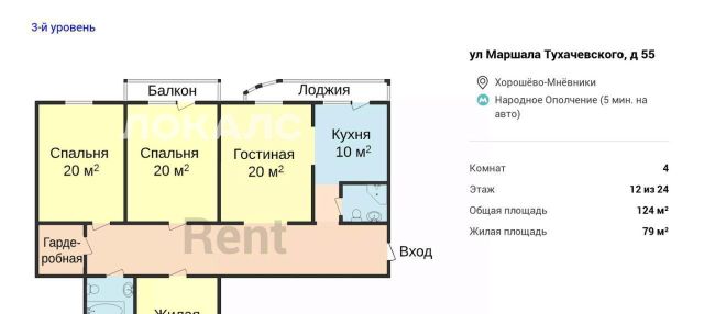 4-к кв. Москва ул. Маршала Тухачевского, 55 (124.0 м²)
