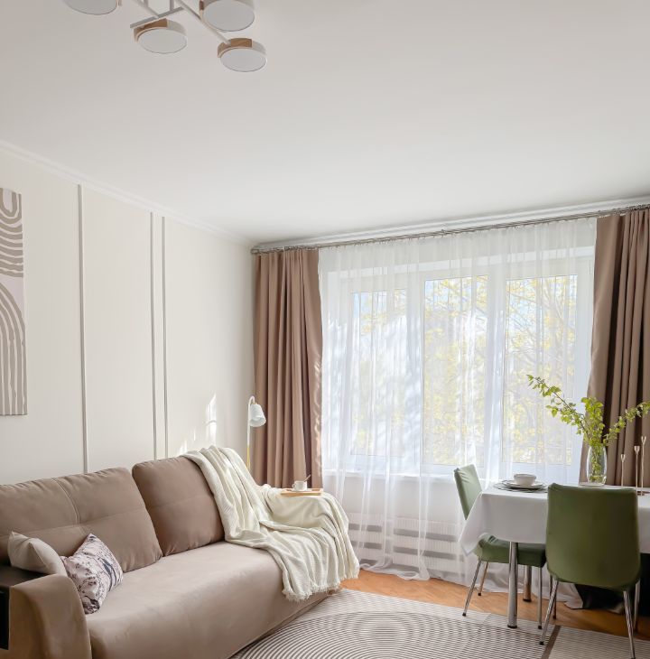 Внутри — современный ремонт с элементами декора, создающие атмосферу уюта.