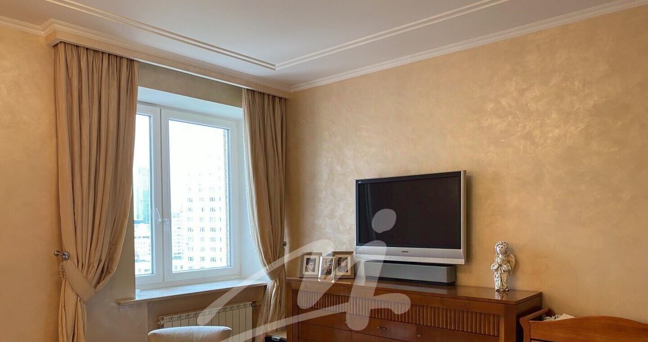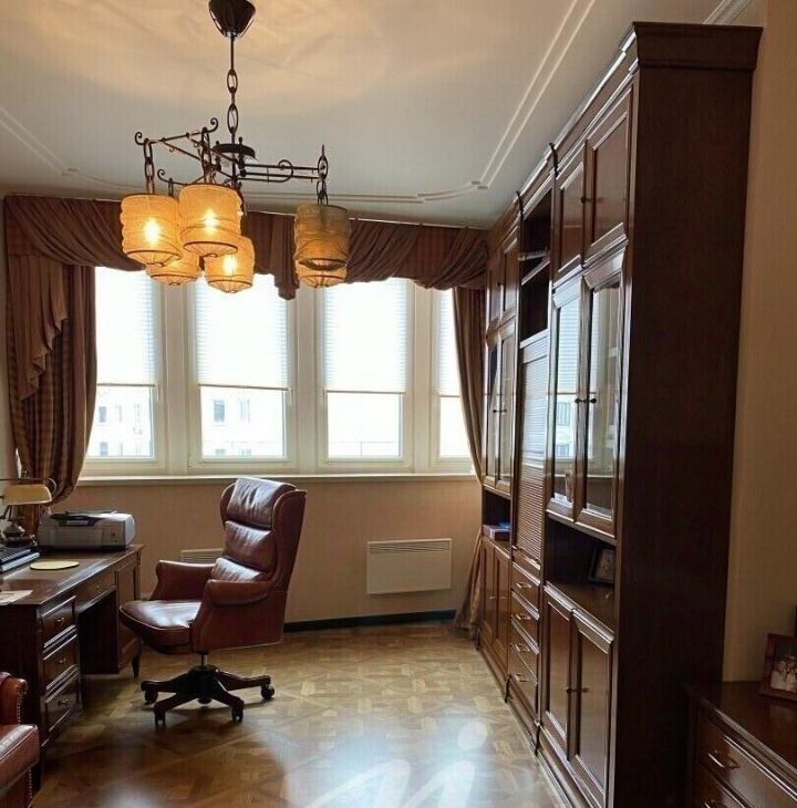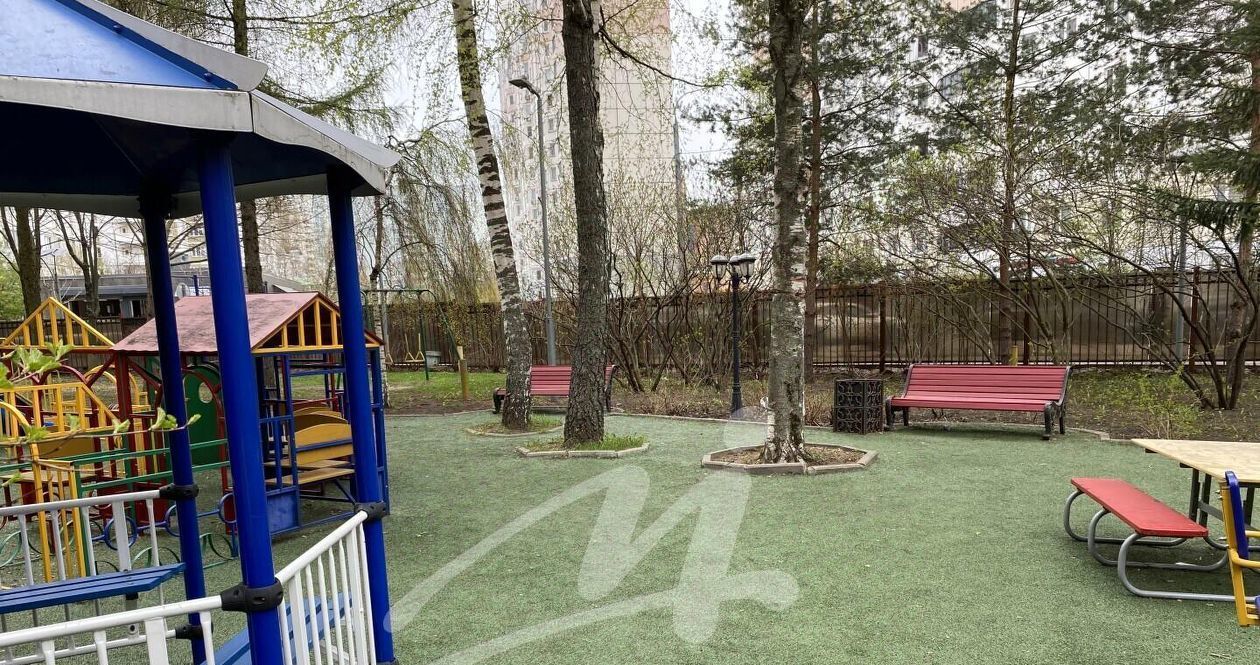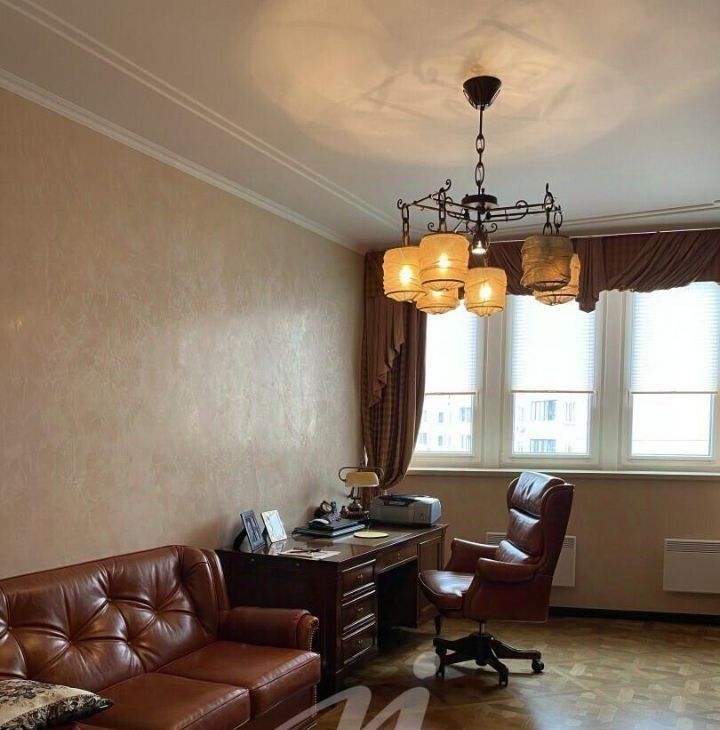 Спальня, детская комната, кабинет, большая гостиная. Два санузла. На территории детская площадка, теннисный корт, зона отдыха с барбекю, Парковка наземная и своя платная подземная. Охрана в подъезде. Шлагбаум. Рядом Воронцовский парк и парк 50- летия Октября.