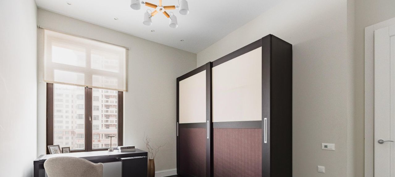 Функциональная планировка просторная гостиная с отдельной кухней, оснащенной всей необходимой техникой, мастер-спальня с гардеробной и большим санузлом с ванной; во второй части квартиры расположены 2 комнаты, которые легко можно трансформировать по назначению - рабочий кабинет, детская или гостевая. Много мест для хранения, гостевой санузел при входе, красивый вид из окон на зеленый бульвар и Шуховскую башню.