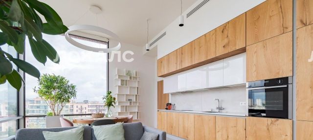 Интерьер квартиры выполнен в современном скандинавском стиле, что создаёт атмосферу уюта и гармонии. Использование натурального дерева, мягких оттенков и максимум света делает пространство по-настоящему живым. Мебель от Bo Concept и сантехника от Grohe, а также встроенная техника премиум-класса, обеспечивают высокий уровень комфорта и функциональности. Квартира полностью укомплектована и готова к проживанию — всё новое, качественное и безупречно чистое.