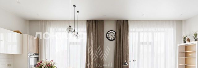 Квартира с тремя спальнями площадью 105 м² в жилом комплексе бизнес-класса "Серебряный парк", на четвёртом этаже. В интерьере в современном стиле преобладают спокойные оттенки и фактура дерева, что создаёт атмосферу уюта и тепла. Здесь есть всё, чтобы вы могли почувствовать себя как дома с первых минут. В гостиной и комнатах установлена мебель и техника, включая телевизор, холодильник, посудомоечную и стиральную машины, а также кондиционеры. Из окон открываются виды на тихую улицу.