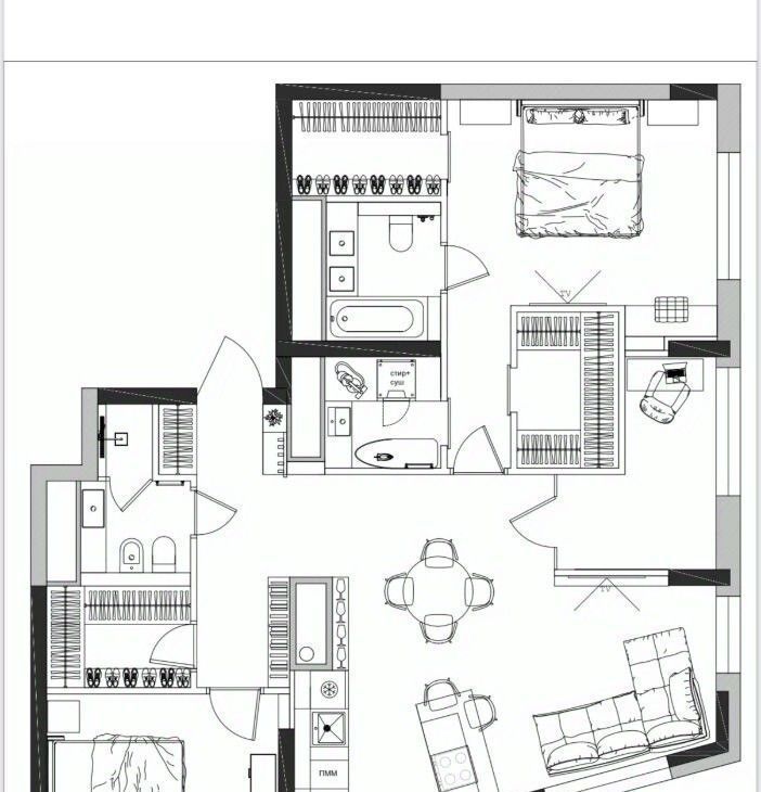 Просторная гостиная-столовая, объединенная с современной зоной кухни, станет сердцем вашего дома. Уютная мастер-спальня, гостевая спальня, изолированный кабинет, 2 полноценных санузла, 3 вместительные гардеробные и отдельная постирочная — здесь есть всё для истинного комфорта.