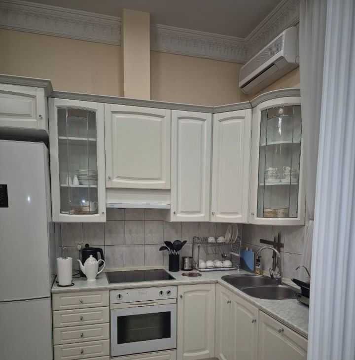 Встроенная кухня со всей необходимой для комфортного проживания бытовой техникой.