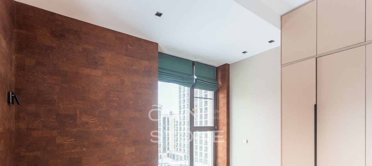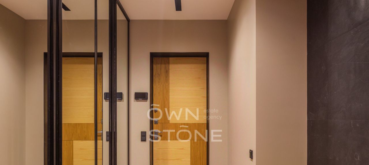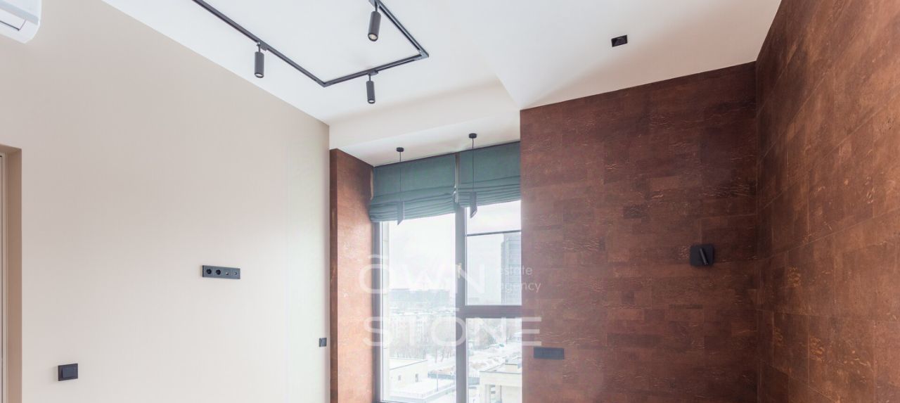 Расположена на 6 этаже 21-этажного дома. Высокие потолки (3 метра) и панорамное остекление наполняют дом светом — открытый вид на окрестности без помех.