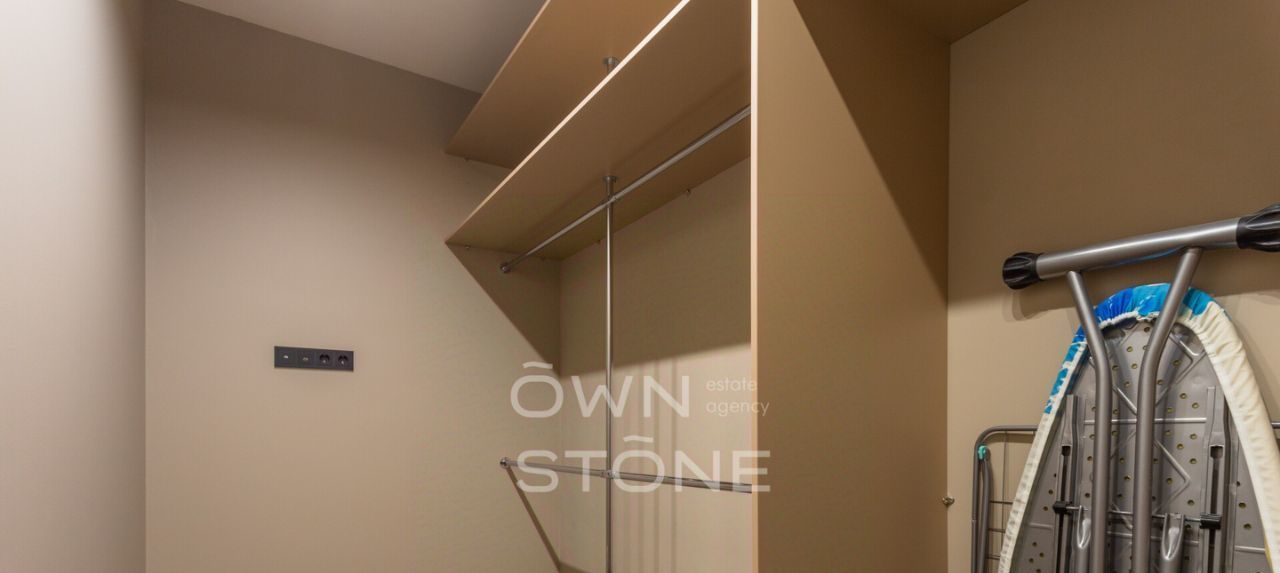 Хранение: отдельная гардеробная комната и постирочная (стиральная + сушильная машины).