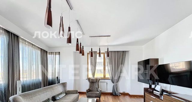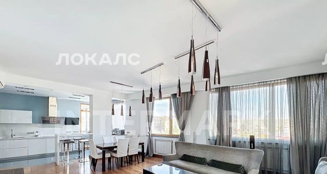 ID 40268. Превосходная 4-комнатная квартира в ЖК "Созвездие Капитал". Квартира с качественной отделкой в современном стиле и дизайнерской мебелью, оснащена качественной бытовой техникой и кондиционерами. Общая площадь: 157 кв. м. Комфортная планировка: гостиная с обеденной зоной, открытая планировка кухни, три спальни, две ванные комнаты, гардеробная, застекленный балкон. Дом с круглосуточной охраной, на первых этажах — магазины, детский центр, во дворе детская и спортивная площадки, гостевая стоянка. Есть возможность арендовать машиноместо в подземном паркинге. Без животных.