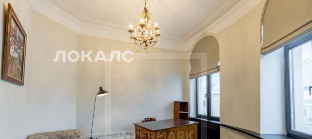 ID 45793. Элегантная 4-комнатная квартира в старинном доме на Патриарших. Красивый интерьер в спокойном классическом стиле, высокие потолки, кондиционеры, окна выходят в переулок. Функциональная планировка: кухня отдельно, просторная гостиная с декоративным камином, главная спальня со своей ванной комнатой, гостевая комната, гостевой санузел с душем, кабинет. Меблирована (возможен частичный вывоз мебели). Богатая инфраструктура района. Парковка стихийная либо в соседних дворах. Достойные соседи.