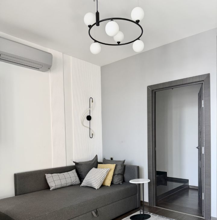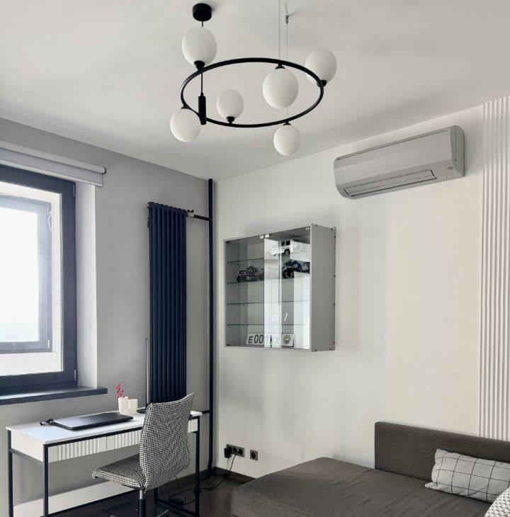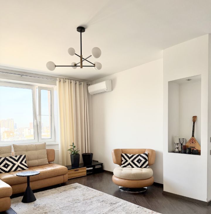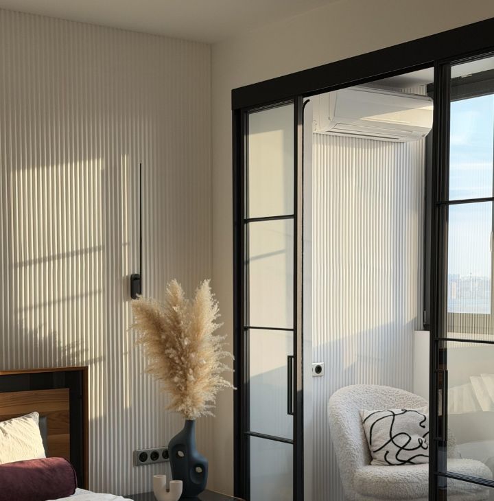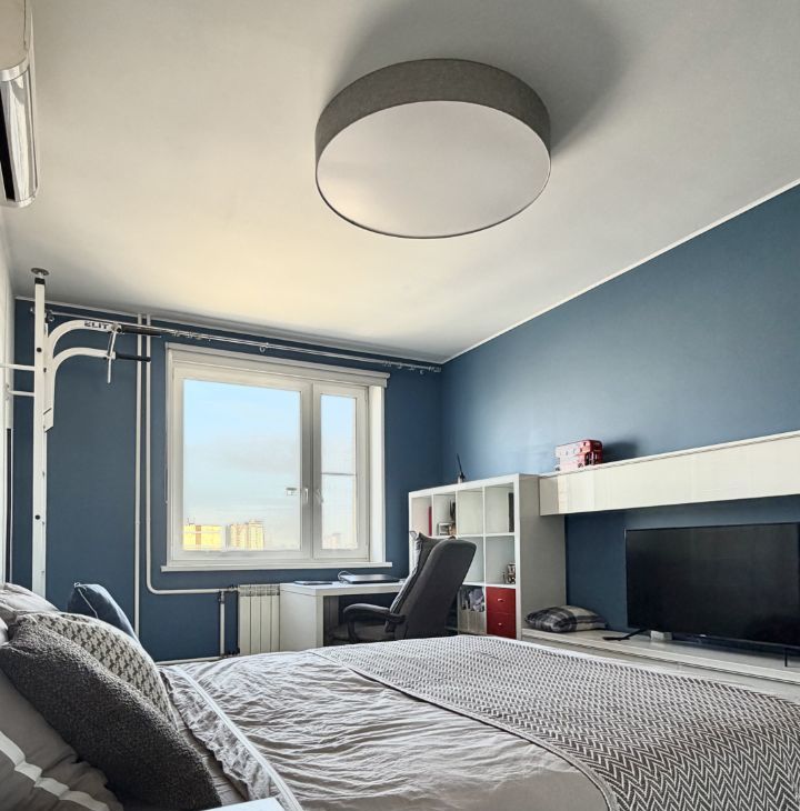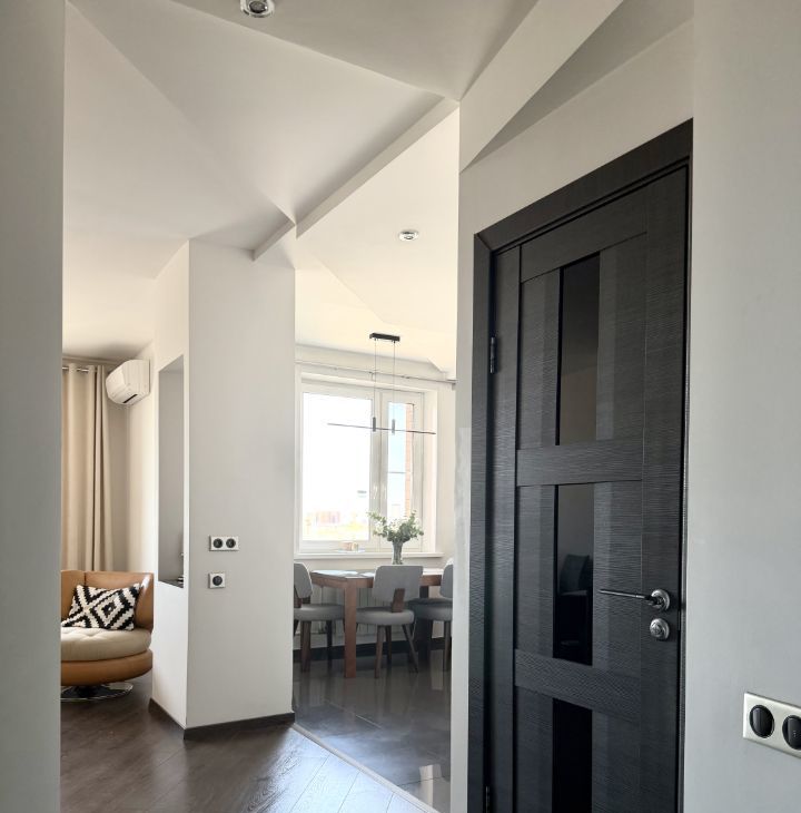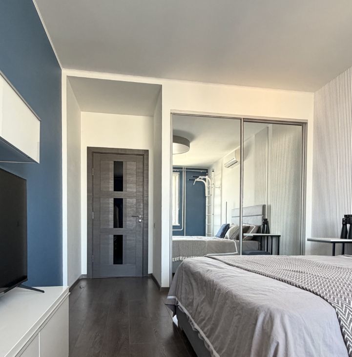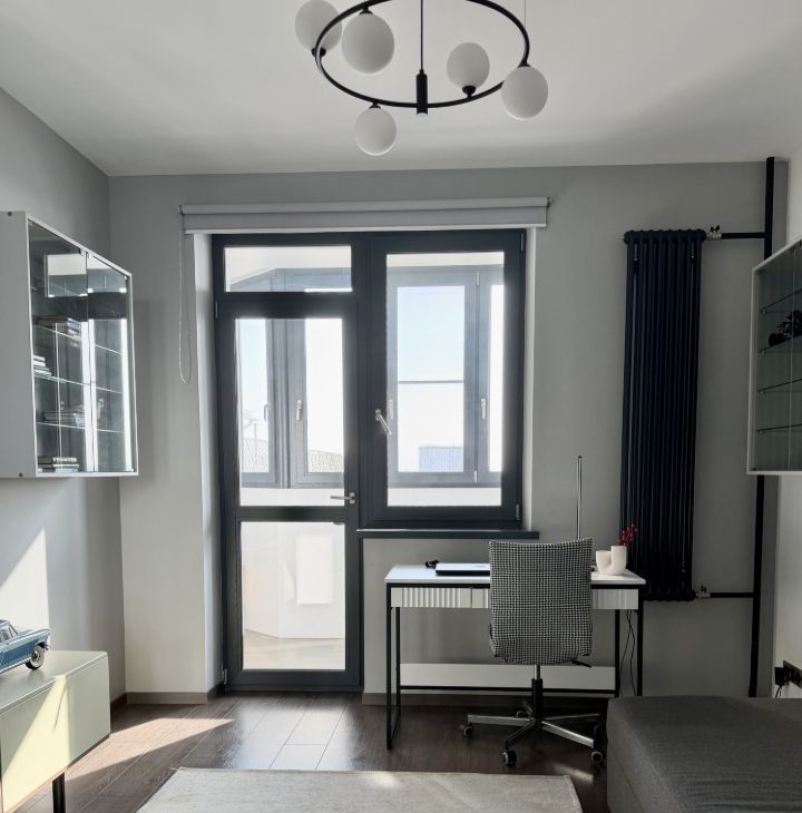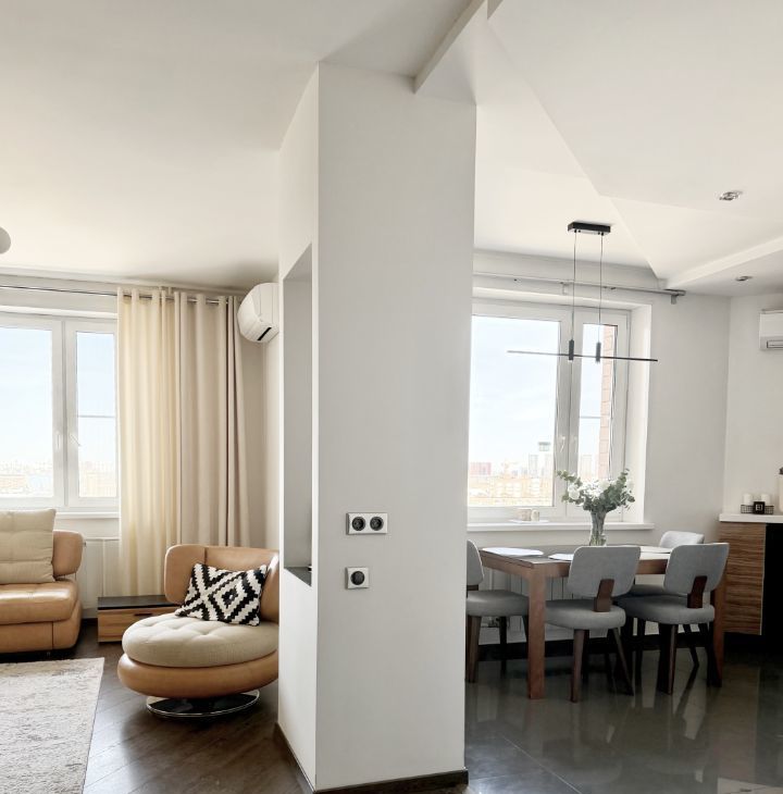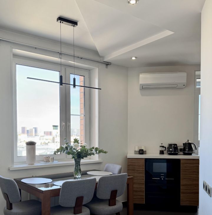 Квартира продается с мебелью, техникой и декором. Стильный ремонт (частично обновлен в 2022г), новые качественные стеклопакеты, стены под покраску, потолки гкл, акценты из гипсовых панелей, установлены вертикальные радиаторы, раздвижная стеклянная перегородка на лоджии, в каждой комнате кондиционер, теплые полы на лоджиях и в ванной. Качественная кухня, столешница из искусственного камня, встроенный холодильник Liebherr, встроенная кухонная техника Siemens: посудомоечная машина, духовой шкаф, микроволновая печь, варочная поверхность, стир. машина.