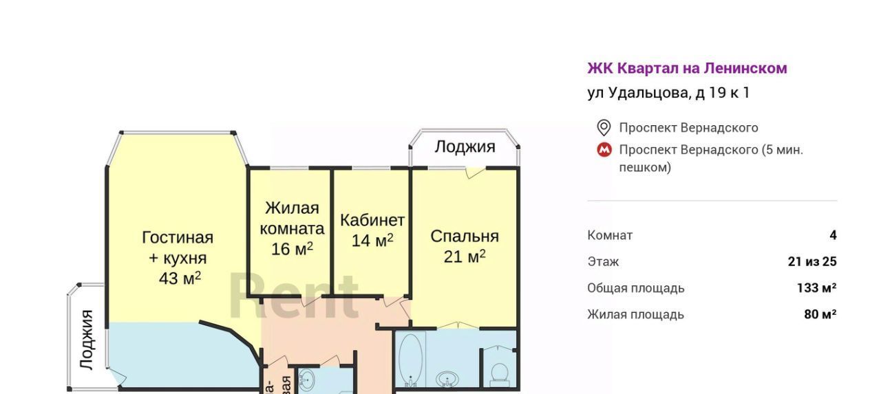 4-к кв. Москва ул. Удальцова, 19К1 (133.0 м²)