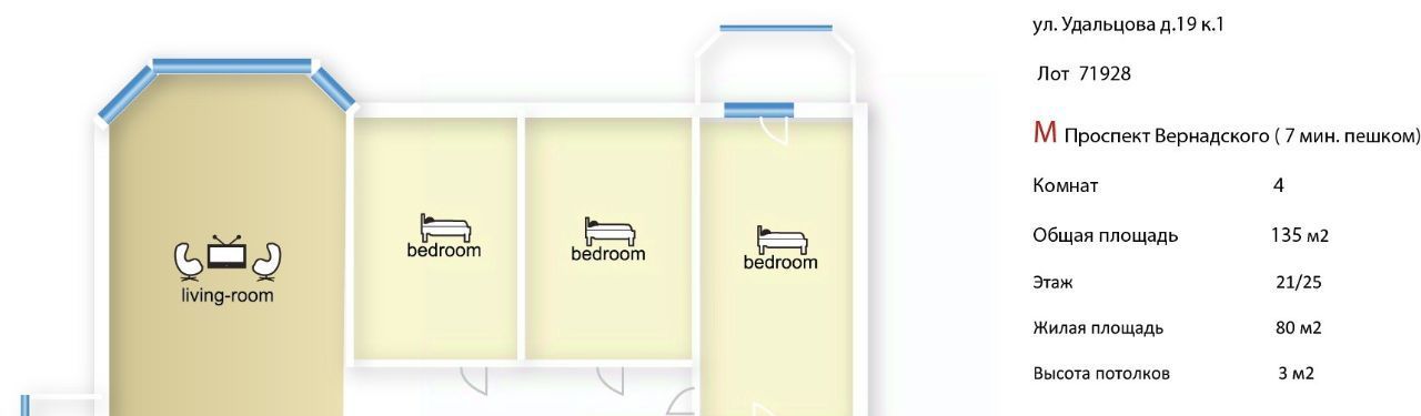 4-к кв. Москва ул. Удальцова, 19К1 (135.0 м²)