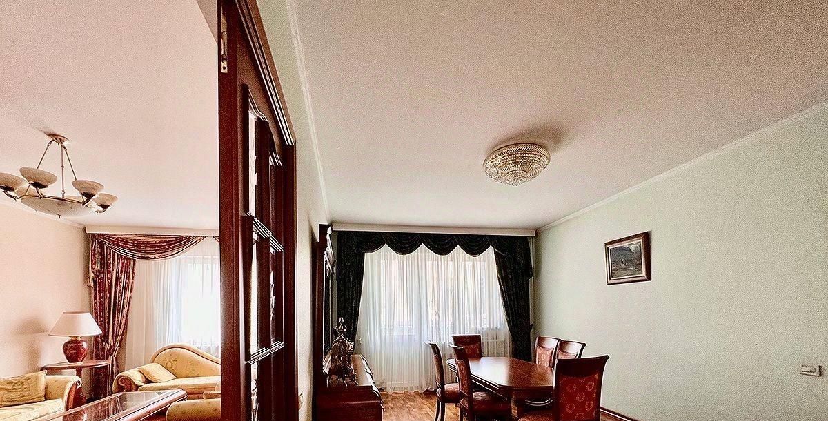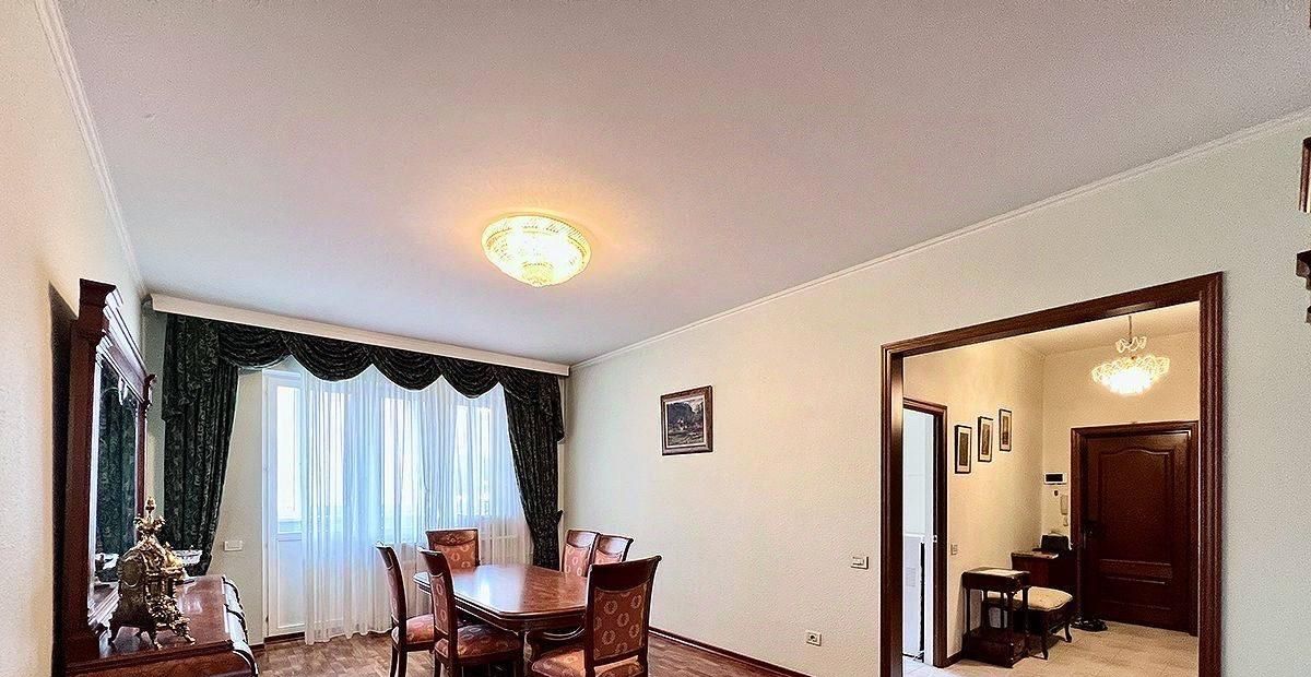 Ищете просторную квартиру в аренду в удобном районе? Вашему вниманию предлагается великолепная 4-комнатная квартира площадью 165 кв. м, расположенная на 3-м этаже 9-этажного кирпичного дома 1998 года постройки. Высокие потолки высотой 3 метра создают ощущение простора и света. До ближайшего метро всего 9 минут пешком, что делает перемещение по городу удобным и быстрым.