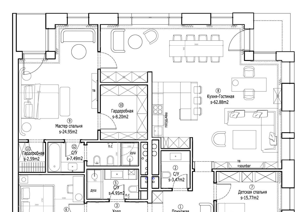 На данный момент в квартире завершается дизайнерский ремонт с отделкой (примеры на фото). Используются премиальные натуральные материалы, лепнина.