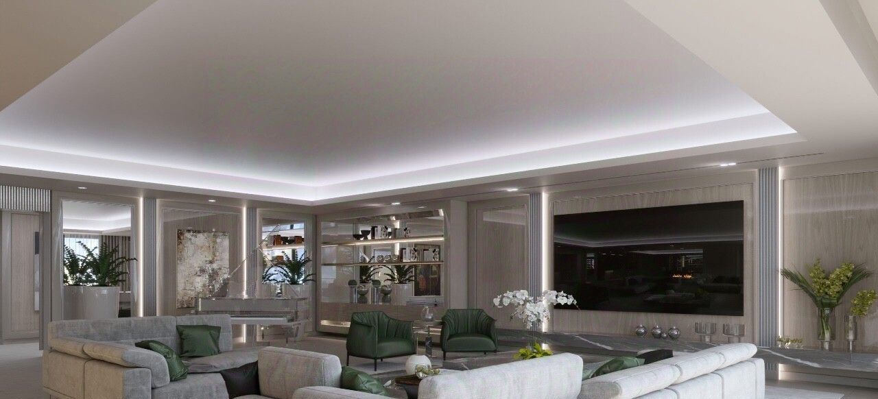 Квартира расположена в доме с ограниченным количеством резиденций — всего 40 апартаментов и 4 пентхауса, что обеспечивает повышенную приватность. Высота потолков достигает 3,43 м, создавая ощущение простора и воздуха.