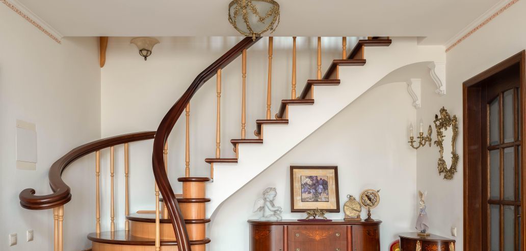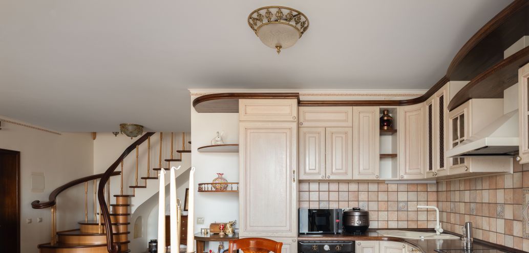 Встроенная мебель, кухонный гарнитур, лестница выполнены из массива дерева!