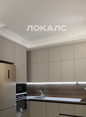Квартира укомплектована встроенной кухней, мебелью и бытовой техникой.