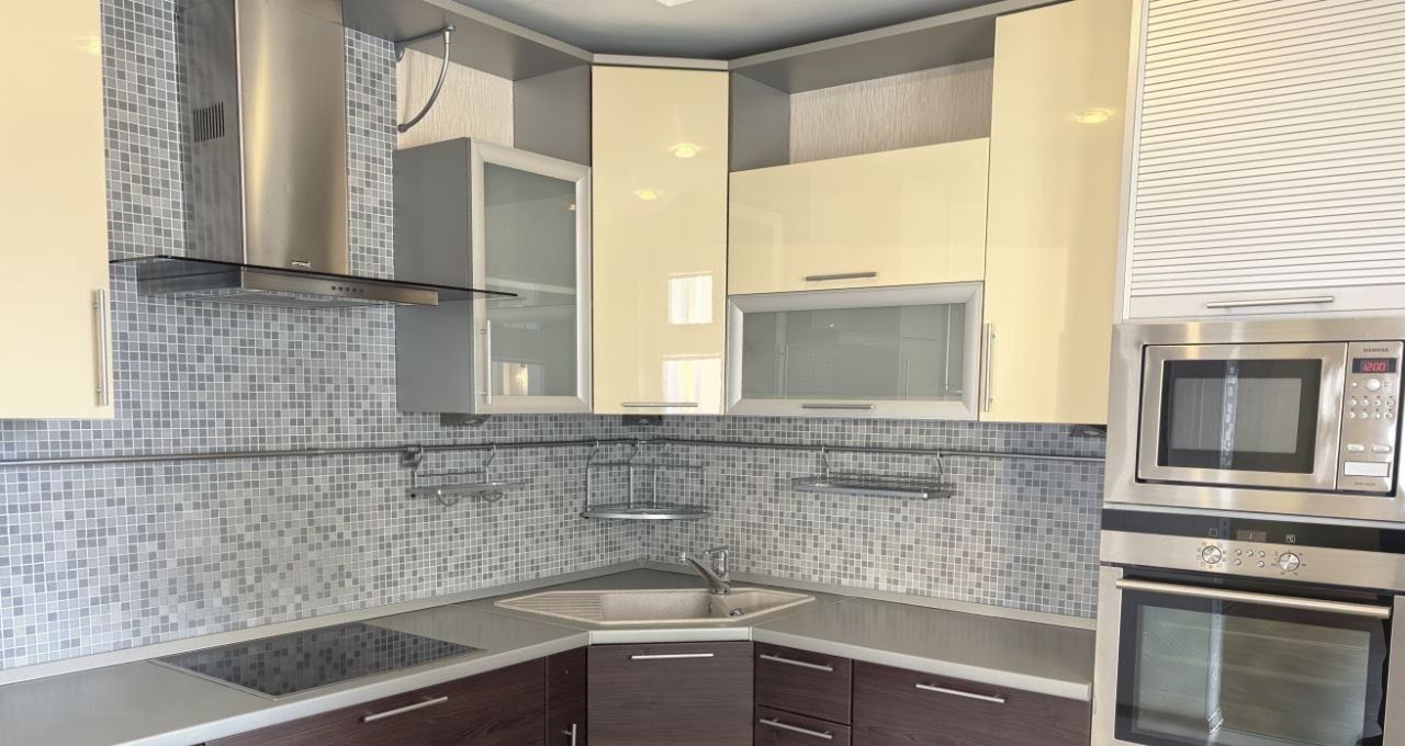 Квартира продается с мебелью и шкафами, как на фото. Кухонная техника бренда Siemens, установлен вытяжной шкаф Kuppersberg, стиральная машина Siemens.