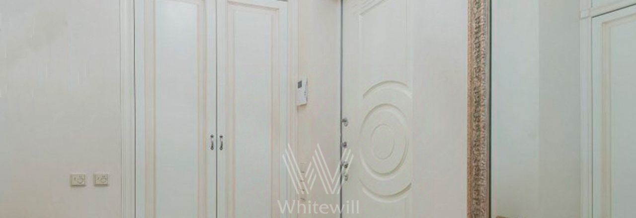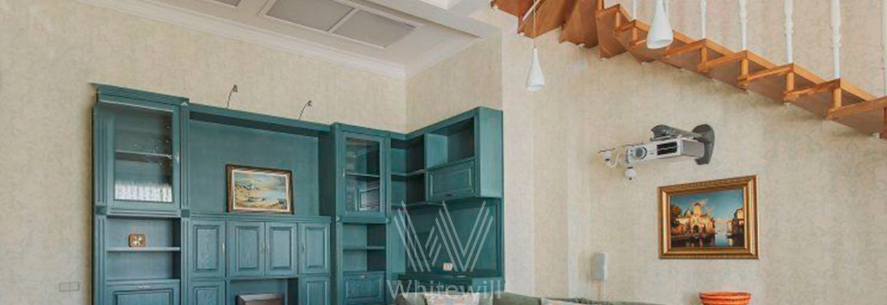 Двухуровневый пентхаус общей площадью 86 м² в реконструированном клубном доме в Мещанском районе. Квартира с 2-мя спальнями расположена на 4-м и 5-м этажах дома. Выполнен авторский ремонт в неоклассическом стиле, на полу покрытие из натурального дерева. Благодаря потолкам высотой 3,2 метра пространство наполнено светом. Окна выходят в тихий двор.