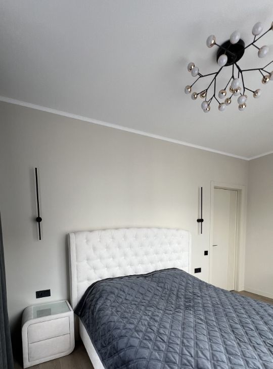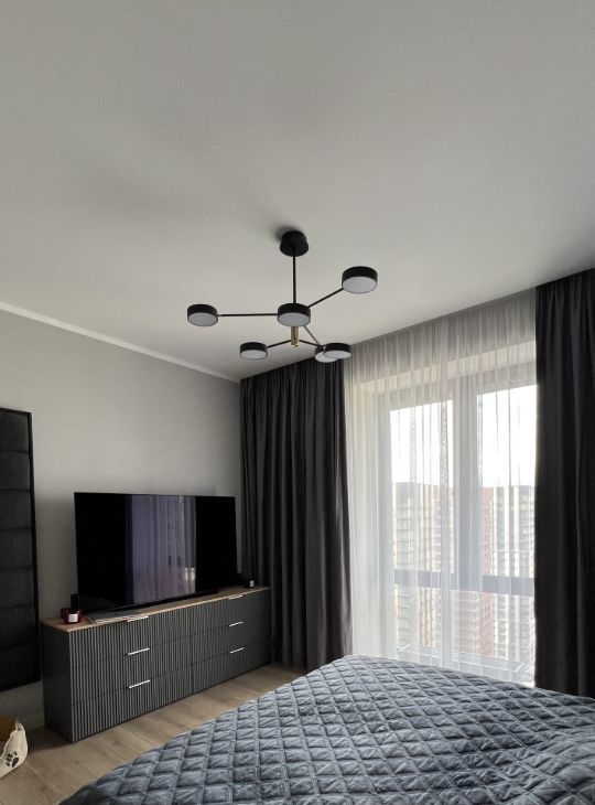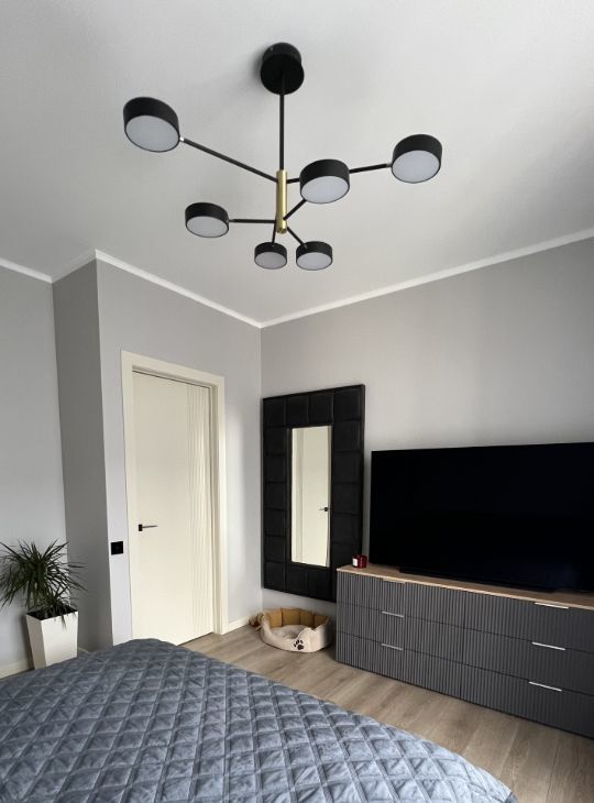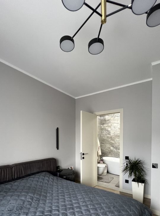 Мастер-спальня с личным санузлом, ванной комнатой и большим ТВ — отдельное пространство для сна и отдыха.