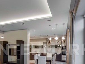 В квартире 4 изолированные комнаты,из них две спальни с гардеробными комнатами, зал, кабинет. Гостинная, кухня, два сан.узла (ванна с джакузи), подсобные помещения с двумя встроенными шкафами и отдельным местом для гладильного оборудования. Квартира оснащена качественной бытовой техникой, кондиционеры - 5 штук, встроенный пылесос канадской фирмы "Kronemark", два бойлера на время отключения горячей воды, посудомоечная машина, холодильник, стир.машина и пр. Теплые полы на кухне и в санузлах. Три встроенный шкафа. В наличии есть парковочное место в паркинге.