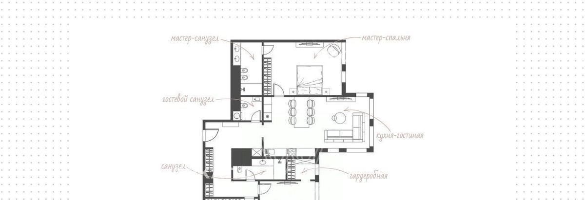 Главное о квартире. Просторная квартира с тремя спальнями общей площадью 134 м² на 14-м этаже комплекса премиум-класса Eleven в Пресненском районе. Интерьер оформлен в современном стиле в пастельных тонах: на стенах молдинги, а на полу светлый паркет, уложенный "французской елкой". Для вашего комфорта установлена вся необходимая мебель и кухонная техника Smeg — здесь вы будете чувствовать себя как дома с первых минут. Благодаря панорамным окнам пространство наполнено естественным светом, а из комнат открываются виды на улицу, пышный парк и благоустроенный двор. Спланирована кухня-гостиная с обеденной зоной, мастер-спальня с ванной комнатой, две спальни, два санузла, один из которых включает постирочную зону со стиральной и сушильной машинами Miele, а также холл.