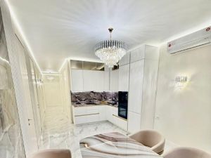 СВЕТЛАЯ, стильная квартира после качественного ДИЗАЙНЕРСКОГО ремонта. Функциональная планировка - СТУДИО: кухня + гостиная, 3 изолированные комнаты: основная спальня со своим санузлом - ванна и встроенной ГАРДЕРОБНОЙ, вторая спальня/детская с гардеробной, кабинет/комната свободного назначения, гостевой санузел - душевая кабина. Квартира полностью меблирована - вывоз / докупка под клиента возможны. Кухня встроенная, оборудована всей необходимой современной бытовой техникой.