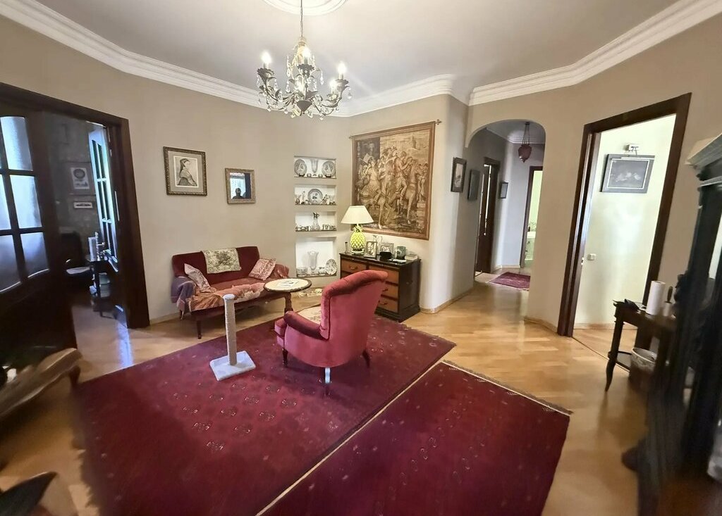 Совмещённые 2 квартиры с тремя балконами, двумя санузлами и потолками высотой 3,2 м — полностью готова к проживанию.