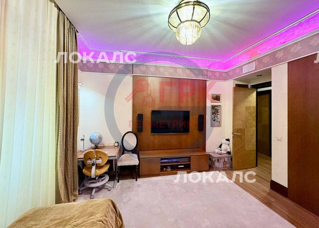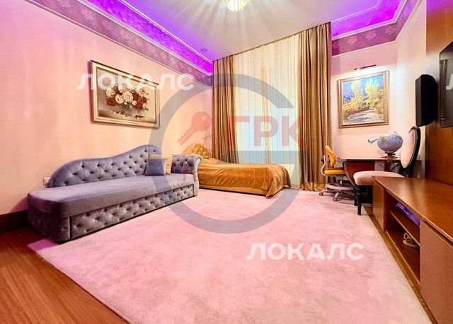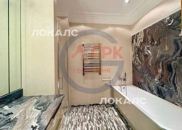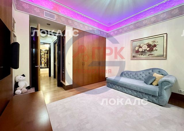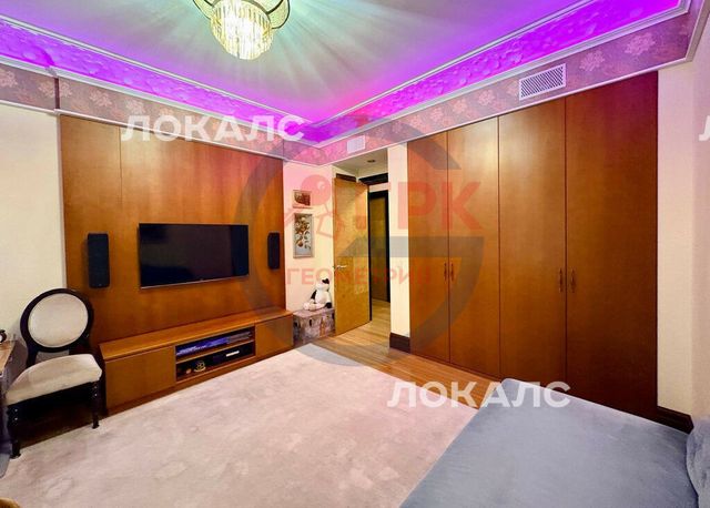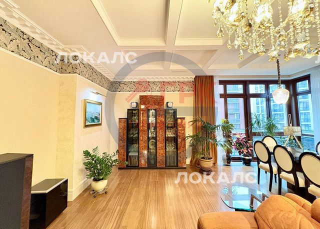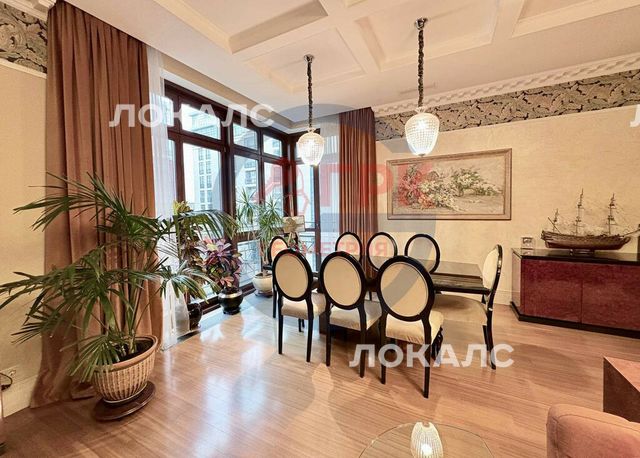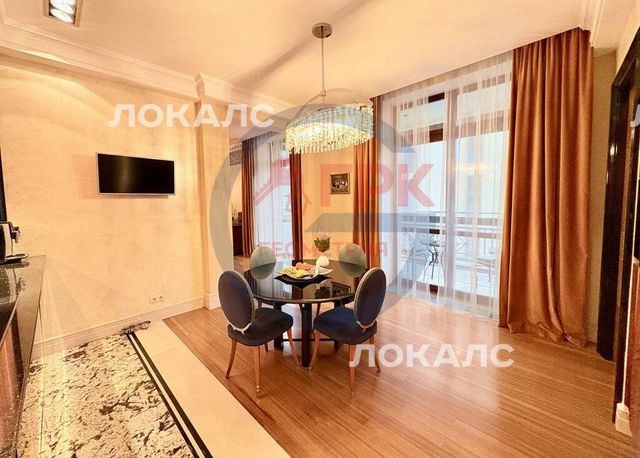 For rent is a 4-room apartment in close to the «Novokuznetskaya» metro station in the «Chetyre solntsa» residential complex. The apartment has a designer renovation. There are panoramic windows, central air conditioning, heated floors, and an acoustic system Heos spread throughout the apartment. The layout is functional: three bedrooms, 2 dressing rooms, three bathrooms, a sauna, and a laundry room. The kitchen is equipped with a modern set of all necessary appliances. There is a fireplace in the living room. The complex is of business class, with a closed territory, round-the-clock security and a concierge. A parking space is included in the price, located in the underground parking and equipped with an electric car charging station.