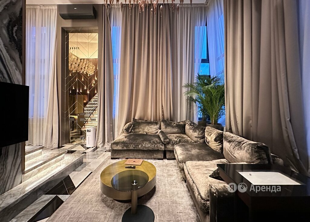 Сдаётся 4-комнатная квартира площадью 88 кв.м. с дизайнерским ремонтом на 24 этаже в 24-этажном доме на срок от 11 месяцев. Из техники есть: