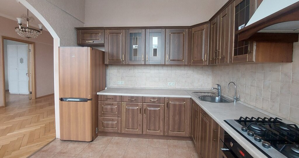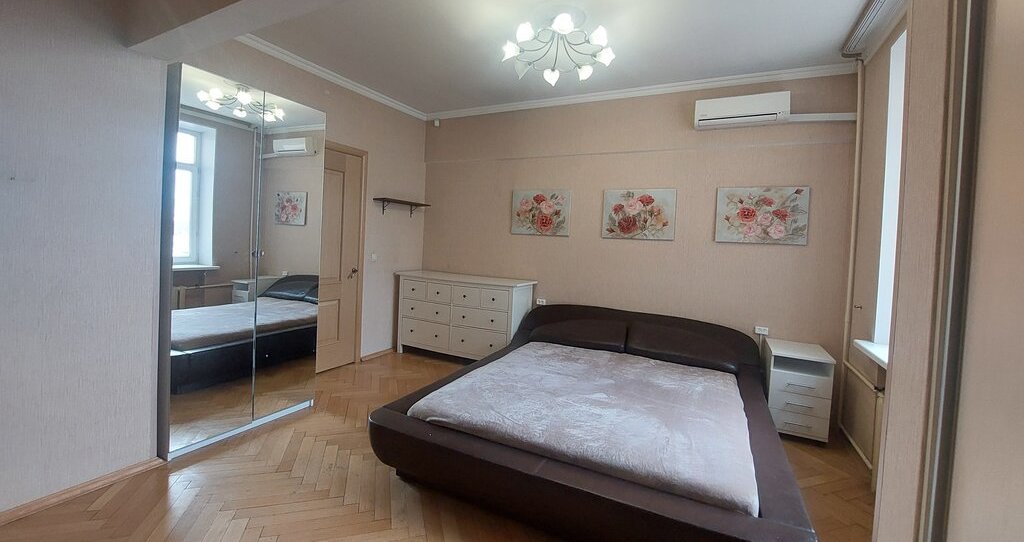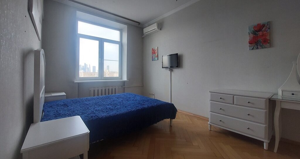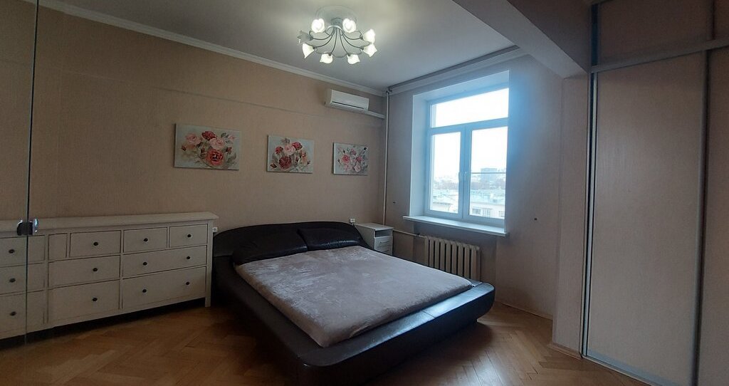 Общая площадь квартиры составляет - 104,3 кв.м. Функциональная планировка, три спальни, гостиная, просторная прихожая. Высокие потолки 3 м., делают пространство просторным и свободным. Квартира предлагается с мебелью. В наличии вся необходимая техника: кондиционеры во всех комнатах, холодильник, две стиральные машины, посудомоечная машина, телевизор. Также в квартире есть балкон с замечательным видом на Андреевский пешеходный мост через Москву-реку и ЦПКиО им. Горького.