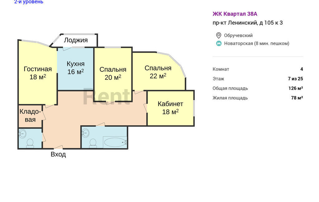 4-комнатная квартира: Москва, Ленинский проспект, 105к3 (126 м²)