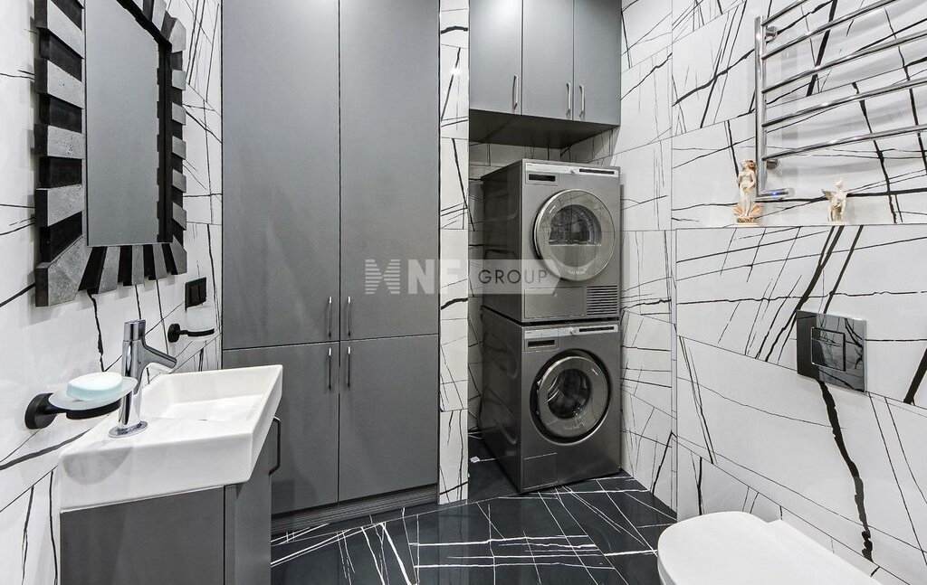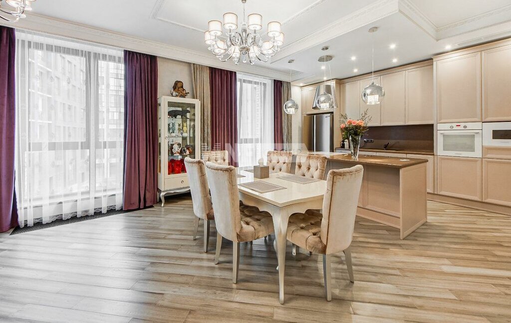 Выполнена отделка в современном стиле по авторскому проекту (ремонт в идеальном состоянии), установлена выполненная на заказ мебель, бытовая техника и сантехника премиум-класса.