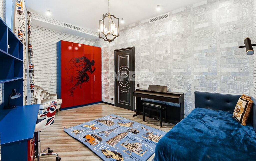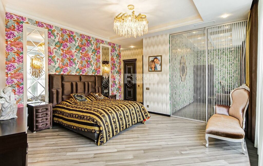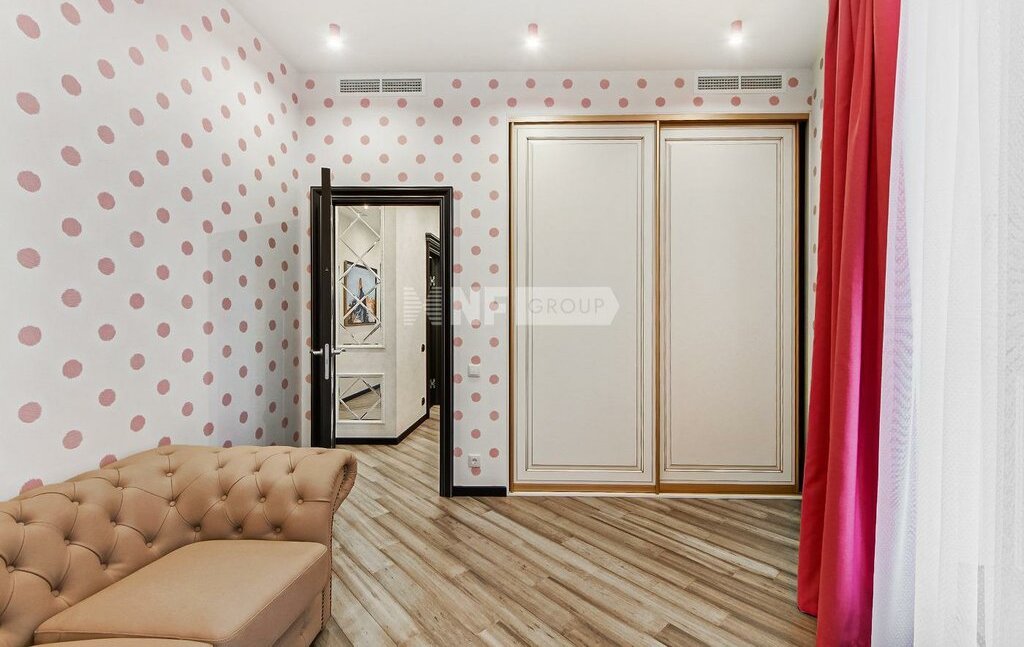 Планировка: гостиная-столовая с зоной кухни, 3 спальни, 2 ванные комнаты, гостевой санузел-постирочная, гардеробные комнаты.