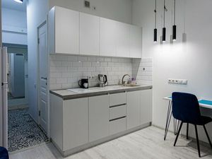 Современный интерьер выполнен по авторскому проекту с использованием качественных материалов. Полностью укомплектована всей необходимой техникой и мебелью: встроенная кухня, посудомоечная машина, кондиционер, большой шкаф для хранения.