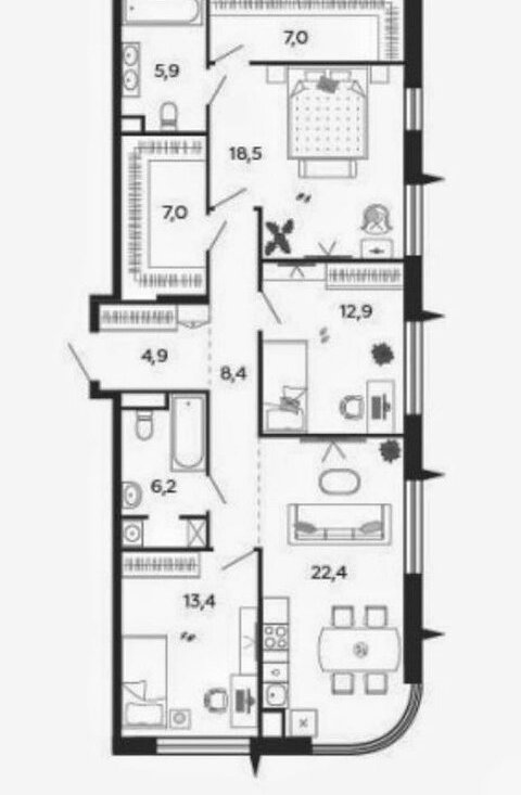 Я собственник, продаю просторную и светлую евро-четырехкомнатную квартиру 106,6 кв м в современном жилом комплексе бизнес-класса ЖК Shagal! Ключи до 30 июня 2026 г., черновая отделка.